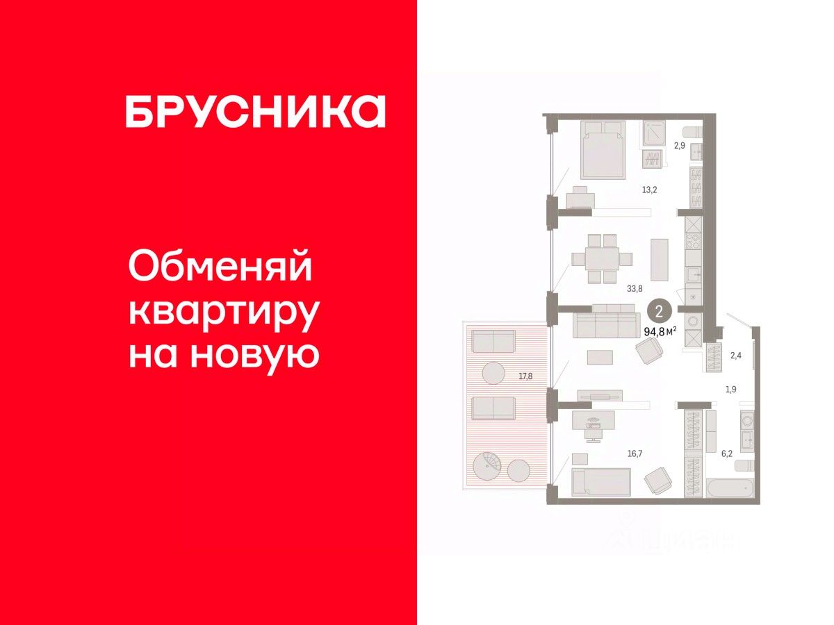 Трехкомнатная квартира от застройщика с предчистовой отделкой в ЖК ''Республики 205'' на 7 этаже. Общая площадь: 108.16 кв.м. Высота потолков 2.7 м. Купить квартиру можно с помощью программ покупки от застройщика Брусника: - ипотека по эксклюзивной ставке с помощью в получении положительного кредитного решения через сервис ипотечный брокер, - квартиры в рассрочку без процентов от застройщика Брусника, - обмен квартиры на новую. Получить одобрение ипотеки или рассрочку, а также осуществить обмен квартир можно онлайн. Дом монолитный, многоподъездный, переменной этажности, от 7 до 16 этажей. Квартира находится в 4-й секции высотой 7 этажей в корпусе 2. На этаже 4 квартиры. В подъезде 1 грузовой лифт. Начало строительства - 1 квартал 2024 года. Окончание строительства - 1 квартал 2026 года. Оформление сделки по договору долевого участия. Район Проект расположен в границах улиц Пермякова, Энергетиков, Воровского и Республики. До центра города — 10 минут на машине. Рядом — автомобильная развязка на пересечении улиц Пермякова и Республики. В шаговой доступности есть школы, детские сады, поликлиники, крупный торговый центр, автовокзал и несколько скверов. Проект ''Республики 205'' — это проект комплексного развития территории, уникальный по своему наполнению. Переосмысляя бывшую территорию завода медицинского оборудования, мы создадим новое место силы — микрорайон, насыщенный деловой, развлекательной, рекреационной, игровой, образовательной и медицинской инфраструктурой. До каждого полезного сервиса здесь можно будет дойти за 15 минут. Локальными центрами ''Республики 205'' будут общественные пространства — скверы, парки, бульвары и площади. В границах нашего участка мы намерены разместить школу, рассчитанную на 1550 учеников, два детских сада на 300 мест и встроенный детский сад на 100 мест. В одном из цехов бывшего завода расположится креативный кластер ''Кузница''. Он станет площадкой для нескольких институций — галереи, лектория, книжного магазина-библиотеки, кинобара и точек креативного pop-up-ритейла. Пешеходные бульвары внутри района соединят между собой улицу ресторанов, детские и спортивные площадки, событийную площадь и летний кинотеатр. Идентификатор квартиры по базе застройщика: РСП-02-4-4. #ZufFZg