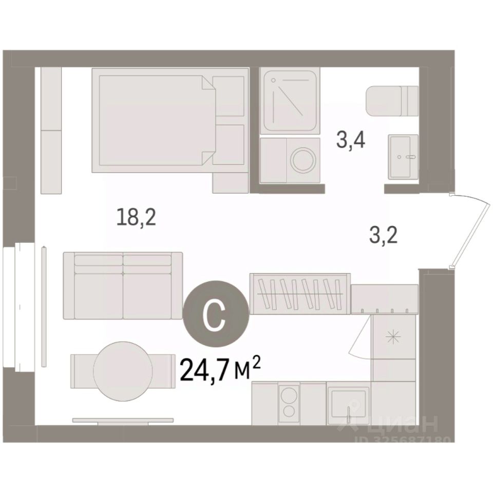 Однокомнатная студия с предчистовой отделкой в Кварталы ''На Минской'' на 4 этаже. Общая площадь: 24.67 кв.м., площадь гостиной 18.2 кв.м., из которых 5 кв.м. выделено под кухонную зону. Все окна выходят на одну сторону. В квартире один совмещенный санузел. Высота потолков 2.7 м. Дом монолитный, многоподъездный, переменной этажности, от 7 до 16 этажей. Квартира находится во 2-й секции высотой 7 этажей в корпусе 1. На этаже 9 квартир. В подъезде 1 грузовой лифт. Окончание строительства - 4 квартал 2026 года. Оформление сделки по договору долевого участия. Студия в кварталах ''На Минской''. Особенности планировки: предчистовая отделка. квартиры в нашей базе: МНС01-Ж2.4.9. В сердце города Кварталы ''На Минской'' находятся в самом центре. За десять минут можно дойти до площади 400-летия Тюмени и Большого Драматического театра, Тюменского индустриального и медицинского университетов, спортивного комплекса ''Строймаш'', ТРЦ ''Гудвин'' и ''Премьер'', Тюменского технопарка. Поблизости много детских садов, школ и поликлиник. Пространство разного опыта Создавая кварталы ''На Минской'' мы вдохновлялись Хакскими дворами в Берлине и улицей Давида Агмашенебели в Тбилиси. И первые и вторая — яркие разнообразные пространства, сформированные прогрессивными архитекторами и притягивающие городских интеллектуалов. Престижная недвижимость здесь соседствует с барами, ресторанами, креативными кластерами и бюро, дизайнерскими лавками. Полезные улицы Кварталы ''На Минской'' свяжет сеть променадов, автомобильных проездов и велодорожек. Уличный фронт проекта мы сформируем с помощью аллейной посадки деревьев. Они создадут тень для ресторанов и кафе на первых этажах, визуально отделят проезжую и пешеходную части, снизят объём пыли и уровень шума. Мы реализуем проект в районе с развитой базовой инфраструктурой. И поэтому тщательно подошли к программированию коммерции, посчитав, что её основная задача — ''закрывать'' более высокие потребности жителей. Здесь может появиться пекарня с вкусными круассанами, турагентство на случай, если захочется перезимовать в Сочи, массажный кабинет, ресторан, когда надоело есть дома и многое другое. #2SsCTU