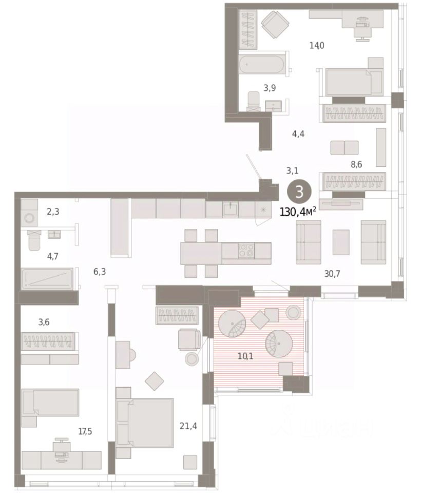 130 м² · Этаж 24 из 25