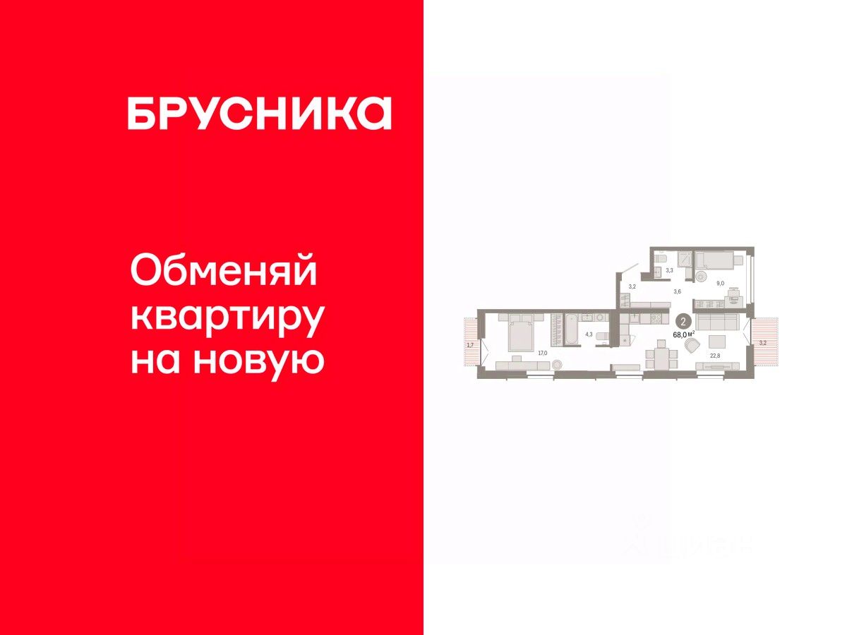Двухкомнатная квартира с предчистовой отделкой в ЖК ''Республики 205'' на 6 этаже. Общая площадь: 67.98 кв.м. Высота потолков 2.7 м. Купить квартиру можно с помощью программ покупки от застройщика Брусника: - ипотека по эксклюзивной ставке с помощью в получении положительного кредитного решения через сервис ипотечный брокер, - квартиры в рассрочку без процентов от застройщика Брусника, - обмен квартиры на новую. Получить одобрение ипотеки или рассрочку, а также осуществить обмен квартир можно онлайн. Дом монолитный, многоподъездный, переменной этажности, от 7 до 16 этажей. Квартира находится в 1-й секции высотой 9 этажей в корпусе 2. На этаже 10 квартир. В подъезде 1 грузовой лифт. Начало строительства - 1 квартал 2024 года. Окончание строительства - 1 квартал 2026 года. Оформление сделки по договору долевого участия. Район Проект расположен в границах улиц Пермякова, Энергетиков, Воровского и Республики. До центра города — 10 минут на машине. Рядом — автомобильная развязка на пересечении улиц Пермякова и Республики. В шаговой доступности есть школы, детские сады, поликлиники, крупный торговый центр, автовокзал и несколько скверов. Проект ''Республики 205'' — это проект комплексного развития территории, уникальный по своему наполнению. Переосмысляя бывшую территорию завода медицинского оборудования, мы создадим новое место силы — микрорайон, насыщенный деловой, развлекательной, рекреационной, игровой, образовательной и медицинской инфраструктурой. До каждого полезного сервиса здесь можно будет дойти за 15 минут. Локальными центрами ''Республики 205'' будут общественные пространства — скверы, парки, бульвары и площади. В границах нашего участка мы намерены разместить школу, рассчитанную на 1550 учеников, два детских сада на 300 мест и встроенный детский сад на 100 мест. В одном из цехов бывшего завода расположится креативный кластер ''Кузница''. Он станет площадкой для нескольких институций — галереи, лектория, книжного магазина-библиотеки, кинобара и точек креативного pop-up-ритейла. Пешеходные бульвары внутри района соединят между собой улицу ресторанов, детские и спортивные площадки, событийную площадь и летний кинотеатр. Идентификатор квартиры по базе застройщика: РСП-02-1-1. #2SS4Do