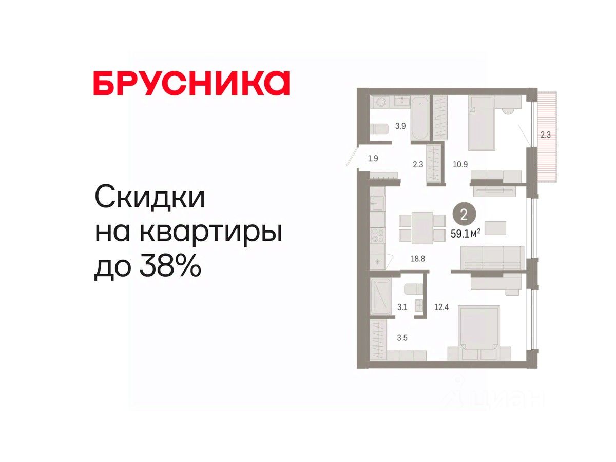 59 м² · Этаж 2 из 7