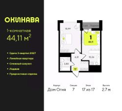 Просторная 1-комн. квартира-студия с предчистовой отделкой в ЖК ''Окинава'' на 15 этаже. Общая площадь: 23.12 кв.м., площадь гостиной 13.1 кв.м., из которых 5 кв.м. выделено под кухонную зону. Все окна выходят на одну сторону. В квартире один балкон, один совмещенный санузел. Высота потолков 2.7 м. Квартира будет сдана с предчистовой отделкой: на полах стяжка под финишное покрытие, стены подготовлены под покраску или оклейку обоями, разведена вся электрика с подготовкой для установки выключателей и освещения. При желании вы можете заказать отделку под ключ, варианты возможных решений представлены в альбоме фотографий. Дом монолитный, многоподъездный, переменной этажности, от 11 до 19 этажей. Квартира находится в 8-й секции высотой 19 этажей в корпусе Дом Воды. На этаже 9 квартир. В подъезде 1 пассажирский и 1 грузовой лифт. Окончание строительства - 4 квартал 2026 года. Оформление сделки по договору долевого участия. ЖК ''Окинава'' это не просто жилой комплекс, это остров 4 стихий. Они отражаются во внешнем виде фасадов домов, обустройстве дворов и внутреннем оформлении холлов. Каждая из стихий это отдельный дом. Между домами раскинется большой двухуровневый пешеходный бульвар. Первый уровень прогулочный с местами для отдыха, амфитеатром и фонтанами. На втором уровне расположатся площадки для детей, спортивных игр и тренировок. Квартал будет располагать богатой инфраструктурой: на первых этажах разместятся магазины, пекарни, кофейни, пункты выдачи, аптеки, детские центры, цветочные салоны и многое другое, что сделает жизнь поистине комфортной. В жилом комплексе есть кладовые, а также несколько видов паркинга: уличный гостевой, закрытый теплый и паркинг в стилобате, попасть в который можно на лифте с любого жилого этажа. Дворы в каждом доме отражают его стихию, отличаясь по наполнению. Они дополняют друг друга, образуя единое дворовое пространство жилого комплекса. Закрытая территория, свободная от автомобилей, обеспечит безопасность и спокойный отдых. Холлы оформлены керамогранитом, зеркалами и разноуровневым освещением. Витражные входные группы, мягкие зоны ожидания, видеонаблюдение 24/7, вместительные колясочные и даже лапомойки для питомцев всё это будет в ЖК ''Окинава''. Жилой комплекс ''Окинава'' находится в активно развивающемся V заречном микрорайоне, недалеко от озера Алебашево, где в будущем расположится масштабный ивент-парк с зонами отдыха. Удобная транспортная развязка позволит добраться до центра всего за 15 минут. #24atCs