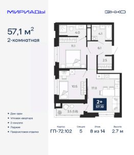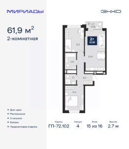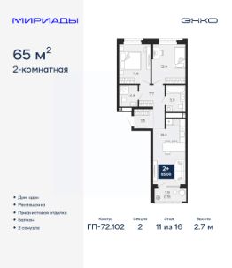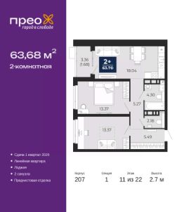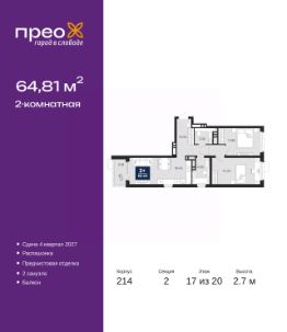 Успейте оформить бронирование на этих условиях! Предложение ограничено! Стоимость квартиры указана со скидкой, ваша экономия составит 424,500 RUB. Звоните, мы вам все подробно расскажем! 2-комн. квартира от застройщика с предчистовой отделкой в ЖК ''Прео'' на 17 этаже. Общая площадь: 64.81 кв.м., жилая: 26.23 кв.м., площадь просторной кухни-столовой: 18.45 кв.м. Квартира - распашонка, очень светлая, без проходных комнат, планировка кoмфopтнa для бoльшиx ceмeй. В квартире один балкон, один совмещенный и один раздельный санузел. Высота потолков 2.7 м. Дом монолитный, двухподъездный, переменной этажности, от 12 до 20 этажей. Квартира находится во 2-й секции высотой 20 этажей в корпусе 214. На этаже 8 квартир. В подъезде 1 пассажирский и 1 грузовой лифт. Окончание строительства - 4 квартал 2027 года. Оформление сделки по договору долевого участия. Преображенский — один из самых привлекательных районов для жизни! Это полностью самостоятельный жилой район с точки зрения инфраструктуры. Преображенский находится между Московским и Червишевским трактами в квартале улиц Закалужская — Вьюжная — Александра Протозанова. Не нужно ждать, когда появится инфраструктура — переезжайте на всё готовое. Вблизи расположены действующие школа и детский сад. В этом году откроется еще один сад, а в следующем году — школа. По соседству с Преображенским запланировано строительство городского парка ''Комарово'' площадью 38 гектар. За 10 минут можно доехать на автомобиле до крупных ТРЦ: ''Лента'', ''Кристалл'', ''Леруа Мерлен'', ''Метро'' и ''Ашан''. С 2018 года в районе открыт Соседский центр — пространство, созданное для формирования добрососедской среды, совместного досуга, общения и реализации соседских инициатив. Здесь проходят встречи соседей, а также сами жители района организовывают мероприятия. Организатором такого события может стать любой желающий. В квартирах выполнена качественная предчистовая отделка. Гладкие стены с финишным выравниванием по маякам. Ровный потолок для установки натяжного потолка. Установлены пятикамерные окна с двойным стеклопакетом (3 стекла). Дизайнерские холлы с видеонаблюдением, безбарьерным и прозрачным входом всегда светло и спокойно. На первом этаже есть просторные колясочные, где все жители могут оставлять свои коляски и велосипеды. В Преображенском есть всё, что нужно для активного отдыха и занятий спортом. Мы сделали большое футбольное поле с безопасным покрытием. Также установили хоккейный корт, который оборудован по всем необходимым стандартам. Во дворах можно делать упражнения на специальных площадках с турниками. Весь район мы обустроили велодорожками, которые связаны в единый маршрут. У нас есть сухие фонтаны, бьющие из земли, деревья, веревки, сетки, скалодром, газон, песок и резинка — осталось просто дать своему ребенку право на свободную игру. По-настоящему хорошие дворы — это те, которые дети предпочитают соцсетям и телевизору. Аккредитация в банках: ПАО ''Газпромбанк'', ОАО ''Альфа-Банк'', ПАО ''Банк Уралсиб'',