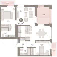2-комн. квартира от застройщика с предчистовой отделкой в ЖК ''Республики 205'' на 3 этаже. Общая площадь: 100.59 кв.м., жилая: 29.7 кв.м., площадь просторной кухни-гостиной: 38.6 кв.м. Квартира угловая, окна oбecпeчивaют paвнoмepнoe ocвeщeниe в тeчeниe дня. В квартире два балкона и одна лоджия, два совмещенных санузла. Терраса представляет собой роскошную зону отдыха, где вы на свой вкус можете создать атмосферу комфорта и уюта. Высота потолков 2.7 м. Купить квартиру можно с помощью программ покупки от застройщика Брусника:- ипотека по эксклюзивной ставке с помощью в получении положительного кредитного решения через сервис ипотечный брокер,- квартиры в рассрочку без процентов от застройщика Брусника,- обмен квартиры на новую. Получить одобрение ипотеки или рассрочку, а также осуществить обмен квартир можно онлайн. Дом монолитный, многоподъездный, переменной этажности, от 7 до 25 этажей. Квартира находится в 3-й секции высотой 9 этажей в корпусе 3-1. На этаже 6 квартир. В подъезде 1 пассажирский и 1 грузовой лифт. Окончание строительства - 1 квартал 2027 года. Оформление сделки по договору долевого участия. Район Проект расположен в границах улиц Пермякова, Энергетиков, Воровского и Республики. До центра города — 10 минут на машине. Рядом — автомобильная развязка на пересечении улиц Пермякова и Республики. В шаговой доступности есть школы, детские сады, поликлиники, крупный торговый центр, автовокзал и несколько скверов. Проект ''Республики 205'' — это проект комплексного развития территории, уникальный по своему наполнению. Переосмысляя бывшую территорию завода медицинского оборудования, мы создадим новое место силы — микрорайон, насыщенный деловой, развлекательной, рекреационной, игровой, образовательной и медицинской инфраструктурой. До каждого полезного сервиса здесь можно будет дойти за 15 минут. Локальными центрами ''Республики 205'' будут общественные пространства — скверы, парки, бульвары и площади.В границах нашего участка мы намерены разместить школу, рассчитанную на 1550 учеников, два детских сада на 300 мест и встроенный детский сад на 100 мест.В одном из цехов бывшего завода расположится креативный кластер ''Кузница''. Он станет площадкой для нескольких институций — галереи, лектория, книжного магазина-библиотеки, кинобара и точек креативного pop-up-ритейла. Пешеходные бульвары внутри района соединят между собой улицу ресторанов, детские и спортивные площадки, событийную площадь и летний кинотеатр. Идентификатор квартиры по базе застройщика: РСП03. #zmaw6W