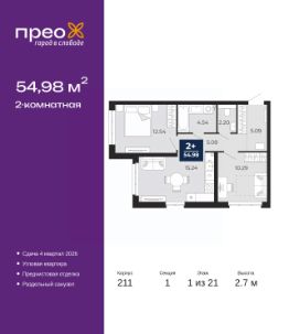 Продается 2-комн. квартира с предчистовой отделкой в ЖК ''Прео'' на 1 этаже. Общая площадь: 54.98 кв.м., жилая: 22.83 кв.м., площадь просторной кухни-столовой: 15.24 кв.м. Угловая квартира, окна oбecпeчивaют paвнoмepнoe ocвeщeниe в тeчeниe дня. В квартире один раздельный санузел. Высота потолков 2.7 м. Дом монолитный, черырехподъездный, переменной этажности, от 14 до 21 этажей. Квартира находится в 1-й секции высотой 21 этаж в корпусе 211. На этаже 8 квартир. В подъезде 1 пассажирский и 1 грузовой лифт. Окончание строительства - 4 квартал 2026 года. Оформление сделки по договору долевого участия. Преображенский — один из самых привлекательных районов для жизни! Это полностью самостоятельный жилой район с точки зрения инфраструктуры. Преображенский находится между Московским и Червишевским трактами в квартале улиц Закалужская — Вьюжная — Александра Протозанова. Не нужно ждать, когда появится инфраструктура — переезжайте на всё готовое. Вблизи расположены действующие школа и детский сад. В этом году откроется еще один сад, а в следующем году — школа. По соседству с Преображенским запланировано строительство городского парка ''Комарово'' площадью 38 гектар. За 10 минут можно доехать на автомобиле до крупных ТРЦ: ''Лента'', ''Кристалл'', ''Леруа Мерлен'', ''Метро'' и ''Ашан''. С 2018 года в районе открыт Соседский центр — пространство, созданное для формирования добрососедской среды, совместного досуга, общения и реализации соседских инициатив. Здесь проходят встречи соседей, а также сами жители района организовывают мероприятия. Организатором такого события может стать любой желающий. В квартирах выполнена качественная предчистовая отделка. Гладкие стены с финишным выравниванием по маякам. Ровный потолок для установки натяжного потолка. Установлены пятикамерные окна с двойным стеклопакетом (3 стекла). Дизайнерские холлы с видеонаблюдением, безбарьерным и прозрачным входом всегда светло и спокойно. На первом этаже есть просторные колясочные, где все жители могут оставлять свои коляски и велосипеды. В Преображенском есть всё, что нужно для активного отдыха и занятий спортом. Мы сделали большое футбольное поле с безопасным покрытием. Также установили хоккейный корт, который оборудован по всем необходимым стандартам. Во дворах можно делать упражнения на специальных площадках с турниками. Весь район мы обустроили велодорожками, которые связаны в единый маршрут. У нас есть сухие фонтаны, бьющие из земли, деревья, веревки, сетки, скалодром, газон, песок и резинка — осталось просто дать своему ребенку право на свободную игру. По-настоящему хорошие дворы — это те, которые дети предпочитают соцсетям и телевизору. Аккредитация в банках: ОАО ''Альфа-Банк'', ПАО Банк ''ВТБ'', ПАО ''Банк Уралсиб'', ПАО ''Газпромбанк'', ''Сбербанк России'' и других. #2Sb2iF