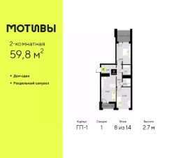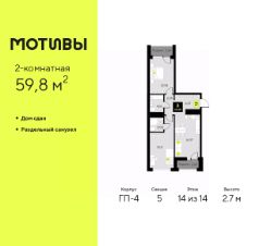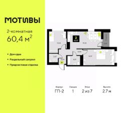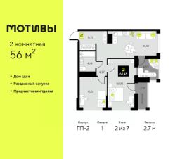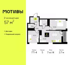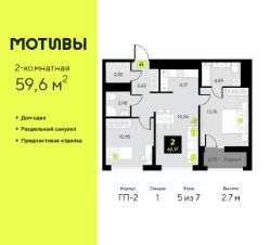 Продается 2-комн. квартира от застройщика с предчистовой отделкой в ЖК ''Мотивы'' на 3 этаже. Общая площадь: 59.3 кв.м. Высота потолков 2.7 м. Квартира будет сдаваться с предчистовой отделкой White Box: выровнены и оштукатурены стены, проведено электричество и отопление, установлены радиаторы. Вы также можете приобрести квартиру с ремонтом от застройщика, представленным в трех цветовых решениях Scandi, Wood и Coffee и включающим ламинат, обои под покраску, двери, натяжной потолок и санузел с сантехникой. При желании вы можете заказать отделку под ключ, варианты возможных решений представлены в альбоме фотографий. Квартира находится в корпусе ГП-2. Дом монолитный, одноподъездный, высотой 7 этажей. На этаже 5 квартир. В подъезде 1 пассажирский и 1 грузовой лифт. На сегодняшний день строительство завершено, дом сдан в 4 квартале 2024 года. Оформление сделки по договору купли-продажи. Закрытая от автомобилей территория, безопасный двор и камеры видеонаблюдения - гаранты вашего спокойствия. Квартал будет располагать богатой инфраструктурой: на первых этажах разместятся магазины, пекарни, кофейни, пункты выдачи, аптеки, детские центры, цветочные салоны и многое другое, что сделает жизнь поистине комфортной. Рядом находится парк общей площадью почти 5000 м², в котором располагаются локации для игр и отдыха жителей, здесь можно совершить утреннюю пробежку или прогуляться после рабочего дня. В парке есть зона воркаута с тренажерами для взрослых, игровые комплексы с горками и канатный комплекс для детей разных возрастов, качели и лавочки для отдыха, площадки для командных видов спорта и для панна-футбола. В ЖК ''Мотивы'' всё продумано до мелочей: светлые холлы входных групп, оформленные в едином стиле, просторные колясочные, лапомойки для питомцев. На территории комплекса находятся 2 8-ми этажных паркинга и более 1000 м/м на открытой парковке. Жилой комплекс находится в одном из экологически благоприятных районов Тюмени, недалеко от Плехановского бора. При этом до центра города можно добраться за 15 минут, а до международного аэропорта Рощино за 13 минут. Окончание строительства: ГП 1, 2, 3, 4 сдача до конца 2024 года, ГП 6, 7, 8 сдача 2 квартал 2026 года. #zMd480