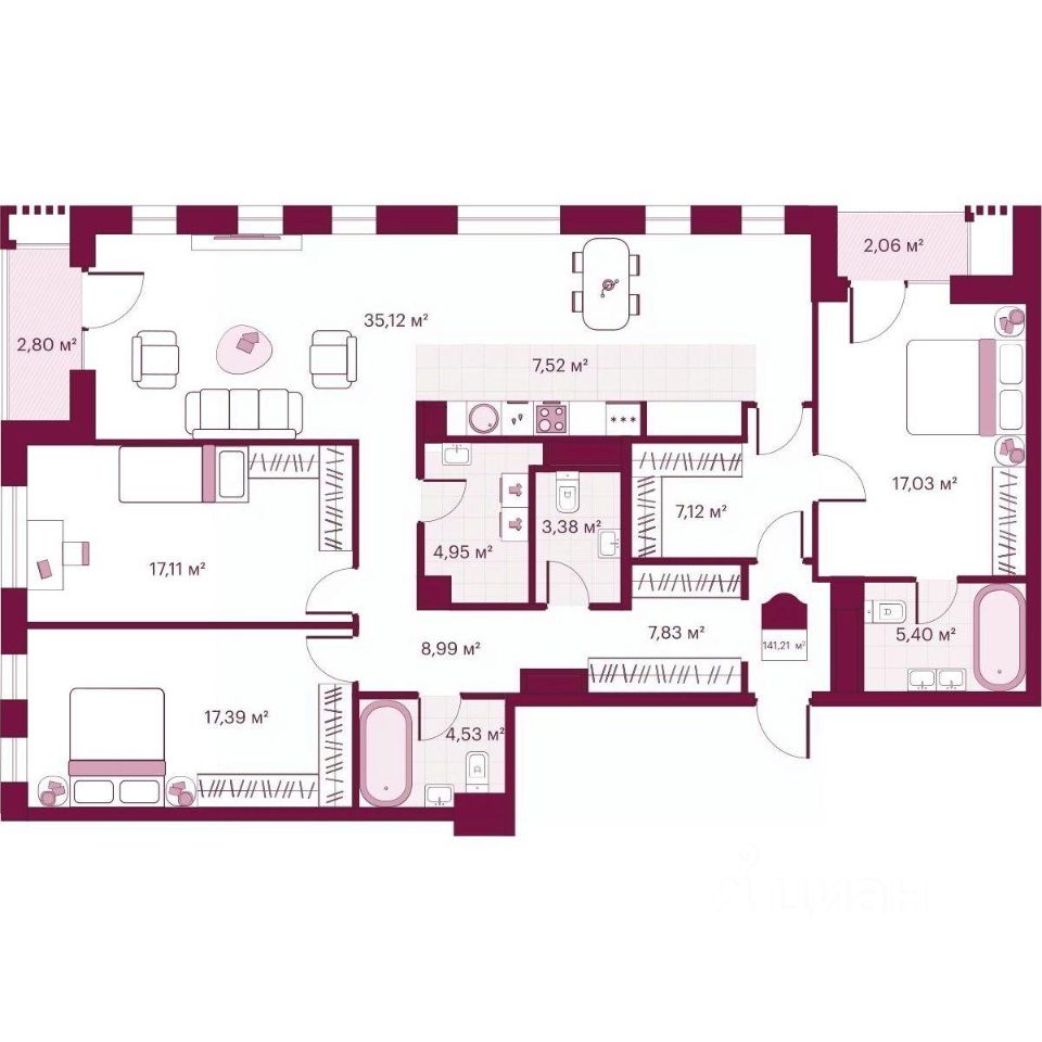 2-комн. квартира от застройщика с предчистовой отделкой в ЖК ''Мотивы'' на 4 этаже. Общая площадь: 61.13 кв.м., жилая: 25.25 кв.м., площадь просторной кухни-столовой: 14.85 кв.м. Угловая квартира, окна oбecпeчивaют paвнoмepнoe ocвeщeниe в тeчeниe дня. В квартире одна лоджия, два совмещенных санузла. Высота потолков 2.7 м. Квартира будет сдаваться с предчистовой отделкой White Box: выровнены и оштукатурены стены, проведено электричество и отопление, установлены радиаторы. Вы также можете приобрести квартиру с ремонтом от застройщика, представленным в трех цветовых решениях Scandi, Wood и Coffee и включающим ламинат, обои под покраску, двери, натяжной потолок и санузел с сантехникой. При желании вы можете заказать отделку под ключ, варианты возможных решений представлены в альбоме фотографий. Дом монолитный, черырехподъездный, переменной этажности, от 12 до 14 этажей. Квартира находится в 1-й секции высотой 14 этажей в корпусе ГП-8. На этаже 12 квартир. В подъезде 1 пассажирский и 1 грузовой лифт. Окончание строительства - 2 квартал 2026 года. Оформление сделки по договору долевого участия. Закрытая от автомобилей территория, безопасный двор и камеры видеонаблюдения - гаранты вашего спокойствия. Квартал будет располагать богатой инфраструктурой: на первых этажах разместятся магазины, пекарни, кофейни, пункты выдачи, аптеки, детские центры, цветочные салоны и многое другое, что сделает жизнь поистине комфортной. Рядом находится парк общей площадью почти 5000 м², в котором располагаются локации для игр и отдыха жителей, здесь можно совершить утреннюю пробежку или прогуляться после рабочего дня. В парке есть зона воркаута с тренажерами для взрослых, игровые комплексы с горками и канатный комплекс для детей разных возрастов, качели и лавочки для отдыха, площадки для командных видов спорта и для панна-футбола. В ЖК ''Мотивы'' всё продумано до мелочей: светлые холлы входных групп, оформленные в едином стиле, просторные колясочные, лапомойки для питомцев. На территории комплекса находятся 2 8-ми этажных паркинга и более 1000 м/м на открытой парковке. Жилой комплекс находится в одном из экологически благоприятных районов Тюмени, недалеко от Плехановского бора. При этом до центра города можно добраться за 15 минут, а до международного аэропорта Рощино за 13 минут. Окончание строительства: ГП 1, 2, 3, 4 сдача до конца 2024 года, ГП 6, 7, 8 сдача 2 квартал 2026 года. #2wA9ub