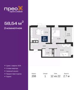 Торопитесь забронировать по акционной цене! Предложение ограничено! Стоимость квартиры указана со скидкой, ваша экономия составит 440,059 RUB. Звоните, мы вам все подробно расскажем! Двухкомнатная квартира с предчистовой отделкой в ЖК ''Прео'' на 12 этаже. Общая площадь: 58.54 кв.м., жилая: 24.73 кв.м., площадь просторной кухни-столовой: 17.76 кв.м. Квартира угловая, идеально подойдет любителям тишины и панорамных видов. В квартире одна лоджия, один совмещенный санузел. Высота потолков 2.7 м. Дом монолитный, трехподъездный, переменной этажности, от 14 до 22 этажей. Квартира находится в 1-й секции высотой 22 этажа в корпусе 208. На этаже 8 квартир. В подъезде 1 пассажирский и 1 грузовой лифт. Окончание строительства - 1 квартал 2026 года. Оформление сделки по договору долевого участия. Преображенский — один из самых привлекательных районов для жизни! Это полностью самостоятельный жилой район с точки зрения инфраструктуры. Преображенский находится между Московским и Червишевским трактами в квартале улиц Закалужская — Вьюжная — Александра Протозанова. Не нужно ждать, когда появится инфраструктура — переезжайте на всё готовое. Вблизи расположены действующие школа и детский сад. В этом году откроется еще один сад, а в следующем году — школа. По соседству с Преображенским запланировано строительство городского парка ''Комарово'' площадью 38 гектар. За 10 минут можно доехать на автомобиле до крупных ТРЦ: ''Лента'', ''Кристалл'', ''Леруа Мерлен'', ''Метро'' и ''Ашан''. С 2018 года в районе открыт Соседский центр — пространство, созданное для формирования добрососедской среды, совместного досуга, общения и реализации соседских инициатив. Здесь проходят встречи соседей, а также сами жители района организовывают мероприятия. Организатором такого события может стать любой желающий. В квартирах выполнена качественная предчистовая отделка. Гладкие стены с финишным выравниванием по маякам. Ровный потолок для установки натяжного потолка. Установлены пятикамерные окна с двойным стеклопакетом (3 стекла). Дизайнерские холлы с видеонаблюдением, безбарьерным и прозрачным входом всегда светло и спокойно. На первом этаже есть просторные колясочные, где все жители могут оставлять свои коляски и велосипеды. В Преображенском есть всё, что нужно для активного отдыха и занятий спортом. Мы сделали большое футбольное поле с безопасным покрытием. Также установили хоккейный корт, который оборудован по всем необходимым стандартам. Во дворах можно делать упражнения на специальных площадках с турниками. Весь район мы обустроили велодорожками, которые связаны в единый маршрут. У нас есть сухие фонтаны, бьющие из земли, деревья, веревки, сетки, скалодром, газон, песок и резинка — осталось просто дать своему ребенку право на свободную игру. По-настоящему хорошие дворы — это те, которые дети предпочитают соцсетям и телевизору. Аккредитация в банках: ''Сбербанк России'', ПАО ''Банк Уралсиб'', ПАО Банк ''ВТБ'', ПАО ''Газпромбанк'', ОАО ''Альфа-Банк'' и других. #zMAZcO