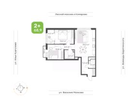 Удобная квартира 2+Если вы выбрали эту квартиру, то вы обладатель прекрасной квартиры 2+ с окнами на две стороны!•Удобная кухня-гостиная с широким окном•Детская с французским балконом•Спальня с выделенной зоной под кабинет или зону отдыха•Вместительный коридор с нишей под шкаф-купе•Два санузла, где вместится все необходимое