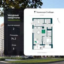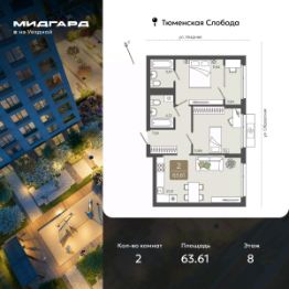 2-комн. квартира от застройщика в ЖК ''Мидгард на Уездной'' на 8 этаже. Квартира без отделки, после оформления собственности можно делать ремонт. Общая площадь: 66.95 кв.м., жилая: 26.21 кв.м., площадь просторной кухни-столовой: 21.87 кв.м. Квартира угловая, окна oбecпeчивaют paвнoмepнoe ocвeщeниe в тeчeниe дня. В квартире одна лоджия, один совмещенный и один раздельный санузел. Высота потолков 2.72 м. Дом монолитный, черырехподъездный, переменной этажности, от 9 до 15 этажей. Квартира находится в 1-й секции высотой 9 этажей в корпусе ГП-1. На этаже 6 квартир. В подъезде 1 пассажирский и 1 грузовой лифт. Окончание строительства - 3 квартал 2027 года. Оформление сделки по договору долевого участия. ''Мидгард на Уездной'' - современный проект комфорт-класса, расположенный на первой линии Тюменской слободы, с видом на развязку Московского тракта. Он сочетает в себе современные архитектурные решения и комфортное проживание в гармонии с природой. Жилой комплекс находится в перспективном районе, который отличается транспортной доступностью: до крупных торговых центров ''Кристалл'' и ''Колумб'' можно добраться за 10 минут, а до центра города - за 15 минут. В шаговой доступности школы, детские сады, торговые центры и парки, что делает локацию идеальной для комфортной жизни. Проектом предусмотрены дома с дизайнерскими входными зонами и планировочными решения для любого сценария жизни с возможностью включить в ипотечный платеж ремонт, мебель и технику от застройщика. Закрытый двор и собственная аллея вдоль жилого комплекса позволят насладиться тишиной вдали от суеты большого города. #2mc0SS