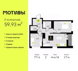 Успейте оформить бронирование по акционной цене, срок предложения ограничен! Стоимость квартиры указана со скидкой, ваша экономия составит 382,000 руб. По всем вопросам обращайтесь в офис продаж, мы вам все подробно расскажем. Просторная 2-комн. квартира с предчистовой отделкой в ЖК ''Мириады'' на 11 этаже. Общая площадь: 52.61 кв.м., жилая: 22.15 кв.м., площадь просторной кухни-столовой: 17.64 кв.м. Комнаты изолированные, все окна выходят на одну сторону. В квартире одна лоджия, один совмещенный санузел. Высота потолков 2.7 м. Дом монолитный, черырехподъездный, переменной этажности, от 13 до 16 этажей. Квартира находится в 4-й секции высотой 16 этажей в корпусе ГП-72.106. На этаже 6 квартир. В подъезде 1 пассажирский и 1 грузовой лифт. Окончание строительства - 3 квартал 2028 года. Оформление сделки по договору долевого участия. Вселенная бесконечных историй. Ранее невиданный Тюмени масштаб: территория 240 гектаров и 1 650 000 м² застройки. Мириады это город масштабных перемен и больших возможностей. Город зеленых рощ и зеркальных озер. Город для работы, учебы и развлечений. Город для детей и их родителей. Город для всех и каждого. Проект расположен в районе Мыс рядом с ТРЦ ''Тюмень Сити Молл'' в границах улицы Тимофея Чаркова, Тобольского тракта и объездной дороги. Срок полного освоения территории - до 2034 года. #26DaZI
