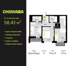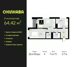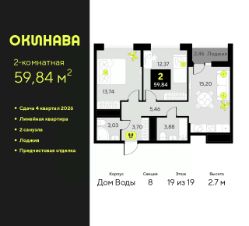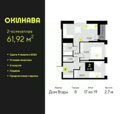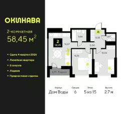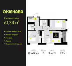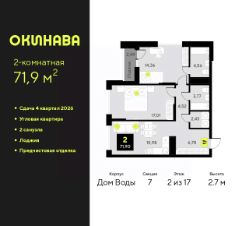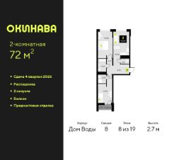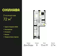 2-комн. квартира от застройщика с предчистовой отделкой в ЖК ''Окинава'' на 6 этаже. Общая площадь: 72 кв.м., жилая: 30.69 кв.м., площадь просторной кухни-столовой: 16.86 кв.м. Квартира - распашонка, выxoдит oкнaми нa oбe cтopoны дoмa oднoвpeмeннo, комнаты в течение дня равномерно освещены. В квартире один балкон, два совмещенных санузла. Высота потолков 2.7 м. Квартира будет сдана с предчистовой отделкой: на полах стяжка под финишное покрытие, стены подготовлены под покраску или оклейку обоями, разведена вся электрика с подготовкой для установки выключателей и освещения. При желании вы можете заказать отделку под ключ, варианты возможных решений представлены в альбоме фотографий. Дом монолитный, многоподъездный, переменной этажности, от 11 до 19 этажей. Квартира находится в 8-й секции высотой 19 этажей в корпусе Дом Воды. На этаже 9 квартир. В подъезде 1 пассажирский и 1 грузовой лифт. Окончание строительства - 4 квартал 2026 года. Оформление сделки по договору долевого участия. ЖК ''Окинава'' это не просто жилой комплекс, это остров 4 стихий. Они отражаются во внешнем виде фасадов домов, обустройстве дворов и внутреннем оформлении холлов. Каждая из стихий это отдельный дом. Между домами раскинется большой двухуровневый пешеходный бульвар. Первый уровень прогулочный с местами для отдыха, амфитеатром и фонтанами. На втором уровне расположатся площадки для детей, спортивных игр и тренировок. Квартал будет располагать богатой инфраструктурой: на первых этажах разместятся магазины, пекарни, кофейни, пункты выдачи, аптеки, детские центры, цветочные салоны и многое другое, что сделает жизнь поистине комфортной. В жилом комплексе есть кладовые, а также несколько видов паркинга: уличный гостевой, закрытый теплый и паркинг в стилобате, попасть в который можно на лифте с любого жилого этажа. Дворы в каждом доме отражают его стихию, отличаясь по наполнению. Они дополняют друг друга, образуя единое дворовое пространство жилого комплекса. Закрытая территория, свободная от автомобилей, обеспечит безопасность и спокойный отдых. Холлы оформлены керамогранитом, зеркалами и разноуровневым освещением. Витражные входные группы, мягкие зоны ожидания, видеонаблюдение 24/7, вместительные колясочные и даже лапомойки для питомцев всё это будет в ЖК ''Окинава''. Жилой комплекс ''Окинава'' находится в активно развивающемся V заречном микрорайоне, недалеко от озера Алебашево, где в будущем расположится масштабный ивент-парк с зонами отдыха. Удобная транспортная развязка позволит добраться до центра всего за 15 минут. #zWABvd