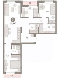 3-комн. квартира от застройщика с предчистовой отделкой в ЖК ''Республики 205'' на 6 этаже. Общая площадь: 94.49 кв.м. Высота потолков 2.7 м. Купить квартиру можно с помощью программ покупки от застройщика Брусника:- ипотека по эксклюзивной ставке с помощью в получении положительного кредитного решения через сервис ипотечный брокер,- квартиры в рассрочку без процентов от застройщика Брусника,- обмен квартиры на новую. Получить одобрение ипотеки или рассрочку, а также осуществить обмен квартир можно онлайн. Дом монолитный, многоподъездный, переменной этажности, от 7 до 25 этажей. Квартира находится в 7-й секции высотой 9 этажей в корпусе 3-1. На этаже 7 квартир. В подъезде 1 пассажирский и 1 грузовой лифт. Окончание строительства - 1 квартал 2027 года. Оформление сделки по договору долевого участия. Район Проект расположен в границах улиц Пермякова, Энергетиков, Воровского и Республики. До центра города — 10 минут на машине. Рядом — автомобильная развязка на пересечении улиц Пермякова и Республики. В шаговой доступности есть школы, детские сады, поликлиники, крупный торговый центр, автовокзал и несколько скверов. Проект ''Республики 205'' — это проект комплексного развития территории, уникальный по своему наполнению. Переосмысляя бывшую территорию завода медицинского оборудования, мы создадим новое место силы — микрорайон, насыщенный деловой, развлекательной, рекреационной, игровой, образовательной и медицинской инфраструктурой. До каждого полезного сервиса здесь можно будет дойти за 15 минут. Локальными центрами ''Республики 205'' будут общественные пространства — скверы, парки, бульвары и площади.В границах нашего участка мы намерены разместить школу, рассчитанную на 1550 учеников, два детских сада на 300 мест и встроенный детский сад на 100 мест.В одном из цехов бывшего завода расположится креативный кластер ''Кузница''. Он станет площадкой для нескольких институций — галереи, лектория, книжного магазина-библиотеки, кинобара и точек креативного pop-up-ритейла. Пешеходные бульвары внутри района соединят между собой улицу ресторанов, детские и спортивные площадки, событийную площадь и летний кинотеатр. Идентификатор квартиры по базе застройщика: РСП03. #2maW7M