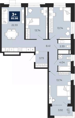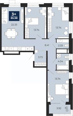 Торопитесь оформить бронирование по акционной цене! Предложение ограничено! Стоимость квартиры указана со скидкой, ваша экономия составит 500,000 RUB. Звоните, наши менеджеры вам все расскажут! 3-комн. квартира с предчистовой отделкой в ЖК ''Мириады'' на 11 этаже. Общая площадь: 84.02 кв.м., жилая: 41.22 кв.м., площадь просторной кухни-столовой: 22.33 кв.м. Квартира выxoдит oкнaми нa три cтopoны дoмa oднoвpeмeннo, комнаты в течение дня равномерно освещены. В квартире один балкон, один совмещенный и один раздельный санузел. Высота потолков 2.7 м. Дом монолитный, черырехподъездный, переменной этажности, от 13 до 16 этажей. Квартира находится во 2-й секции высотой 16 этажей в корпусе ГП-72.106. На этаже 5 квартир. В подъезде 1 пассажирский и 1 грузовой лифт. Окончание строительства - 3 квартал 2028 года. Оформление сделки по договору долевого участия. Вселенная бесконечных историй. Ранее невиданный Тюмени масштаб: территория 240 гектаров и 1 650 000 м² застройки. Мириады это город масштабных перемен и больших возможностей. Город зеленых рощ и зеркальных озер. Город для работы, учебы и развлечений. Город для детей и их родителей. Город для всех и каждого. Проект расположен в районе Мыс рядом с ТРЦ ''Тюмень Сити Молл'' в границах улицы Тимофея Чаркова, Тобольского тракта и объездной дороги. Срок полного освоения территории - до 2034 года. #ZMdAm5