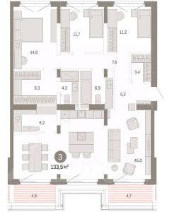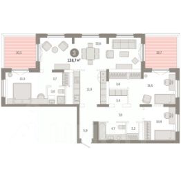 Просторная трехкомнатная квартира с предчистовой отделкой в ЖК ''Айвазовский City'' на 12 этаже. Общая площадь: 95.7 кв.м., жилая: 42.6 кв.м., площадь просторной кухни-столовой: 24.7 кв.м. Квартира - распашонка, без проходных комнат, окна выходят на paзные стороны дома. В квартире два совмещенных санузла. Высота потолков 2.7 м. Дом монолитный, многоподъездный, переменной этажности, от 14 до 24 этажей. Квартира находится во 2-й секции высотой 18 этажей в корпусе ГП-8. На этаже 5 квартир. В подъезде 1 пассажирский и 1 грузовой лифт. Окончание строительства - 3 квартал 2026 года. Оформление сделки по договору долевого участия. Новый жилой район располагается в живописном месте на берегу Туры в центральной части города. Принципиально новое пространство для жизни в центре современного города для тех, чьи мечты сбываются, кто нацелен на постоянный рост, перемены к лучшему для себя и своих близких.Каждая деталь Айвазовский City вдохновляет и заряжает на новые свершения: авторская архитектура, сбалансированная продуманная инфраструктура, дизайнерские дворы со спортивными и детскими площадками, парковые зоны с фонтанами, водный канал, украшающий центральный прогулочный маршрут района и многое другое. В 2019 года проект стал лауреатом престижной премии Urban Awards 2019 в номинации ''Лучший строящийся региональный жилой комплекс бизнес-класса''. Главная особенность Айвазовский City - соседство разных архитектурных школ в рамках одного дома. Изысканная классика, выразительная эклектика и оригинальный модерн - жить в одном из таких домов настоящий повод для гордости. Айвазовский City это идеальное сочетание комфорта, технологий и развитой инфраструктуры. Вход в подъезд возможен с улицы и со двора. Отправляясь на работу или за покупками, жители могут выйти с внешней стороны дома, а для прогулки с ребенком со стороны двора. Экологически чистые материалы и энергосберегающие технологии, качественное освещение общественных зон, видеонаблюдение по всей территории жилого района (в том числе в подъездах, лифтах и в подземном паркинге), закрытые дворы с доступом только для жителей Айвазовский City. Часть домов в Айвазовский City будут оснащены подземным паркингом. Востребованный в нашем климатическом поясе формат хранения автомобилей защитит собственность владельца в любое время года. Аккредитация в банках: ОАО ''Альфа-Банк'', ''Сбербанк России'', ПАО ''Газпромбанк'', ПАО Банк ''ВТБ'', ПАО Банк ''ФК Открытие'' и других. #25F6bT