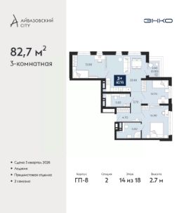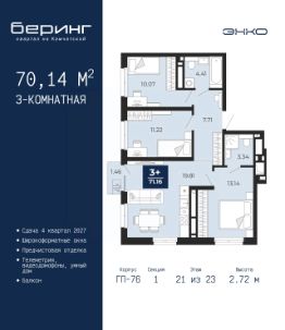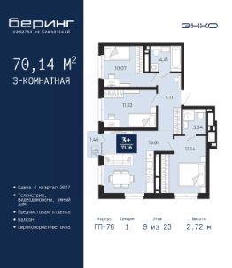 Продается 3-комн. квартира в ЖК ''Мотивы'' на 4 этаже. Общая площадь: 73.8 кв.м. Высота потолков 2.7 м. Дом монолитный, черырехподъездный, переменной этажности, от 12 до 14 этажей. Квартира находится в 5-й секции высотой 14 этажей в корпусе ГП-3. На этаже 5 квартир. В подъезде 1 пассажирский и 1 грузовой лифт. В настоящее время строительство завершено, дом сдан в 4 квартале 2024 года. Оформление сделки по договору купли-продажи. Закрытая от автомобилей территория, безопасный двор и камеры видеонаблюдения - гаранты вашего спокойствия. Квартал будет располагать богатой инфраструктурой: на первых этажах разместятся магазины, пекарни, кофейни, пункты выдачи, аптеки, детские центры, цветочные салоны и многое другое, что сделает жизнь поистине комфортной. Рядом находится парк общей площадью почти 5000 м², в котором располагаются локации для игр и отдыха жителей, здесь можно совершить утреннюю пробежку или прогуляться после рабочего дня. В парке есть зона воркаута с тренажерами для взрослых, игровые комплексы с горками и канатный комплекс для детей разных возрастов, качели и лавочки для отдыха, площадки для командных видов спорта и для панна-футбола. В ЖК ''Мотивы'' всё продумано до мелочей: светлые холлы входных групп, оформленные в едином стиле, просторные колясочные, лапомойки для питомцев. На территории комплекса находятся 2 8-ми этажных паркинга и более 1000 м/м на открытой парковке. Жилой комплекс находится в одном из экологически благоприятных районов Тюмени, недалеко от Плехановского бора. При этом до центра города можно добраться за 15 минут, а до международного аэропорта Рощино за 13 минут. Окончание строительства: ГП 1, 2, 3, 4 сдача до конца 2024 года, ГП 6, 7, 8 сдача 2 квартал 2026 года. #2mdWBF