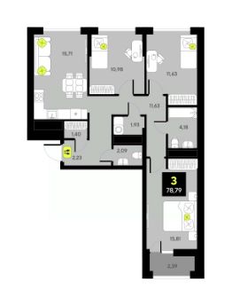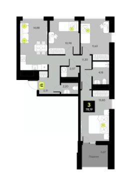 Трехкомнатная квартира от застройщика в ЖК ''Мотивы'' на 3 этаже. Общая площадь: 73.6 кв.м. Высота потолков 2.7 м. Дом монолитный, многоподъездный, переменной этажности, от 5 до 14 этажей. Квартира находится в 1-й секции высотой 14 этажей в корпусе ГП-4. На этаже 5 квартир. В подъезде 1 пассажирский и 1 грузовой лифт. В настоящее время строительство завершено, дом сдан в 4 квартале 2024 года. Оформление сделки по договору купли-продажи. Закрытая от автомобилей территория, безопасный двор и камеры видеонаблюдения - гаранты вашего спокойствия. Квартал будет располагать богатой инфраструктурой: на первых этажах разместятся магазины, пекарни, кофейни, пункты выдачи, аптеки, детские центры, цветочные салоны и многое другое, что сделает жизнь поистине комфортной. Рядом находится парк общей площадью почти 5000 м², в котором располагаются локации для игр и отдыха жителей, здесь можно совершить утреннюю пробежку или прогуляться после рабочего дня. В парке есть зона воркаута с тренажерами для взрослых, игровые комплексы с горками и канатный комплекс для детей разных возрастов, качели и лавочки для отдыха, площадки для командных видов спорта и для панна-футбола. В ЖК ''Мотивы'' всё продумано до мелочей: светлые холлы входных групп, оформленные в едином стиле, просторные колясочные, лапомойки для питомцев. На территории комплекса находятся 2 8-ми этажных паркинга и более 1000 м/м на открытой парковке. Жилой комплекс находится в одном из экологически благоприятных районов Тюмени, недалеко от Плехановского бора. При этом до центра города можно добраться за 15 минут, а до международного аэропорта Рощино за 13 минут. Окончание строительства: ГП 1, 2, 3, 4 сдача до конца 2024 года, ГП 6, 7, 8 сдача 2 квартал 2026 года. #z6dwcd