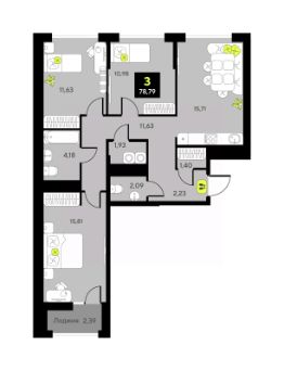 Трехкомнатная квартира с предчистовой отделкой в ЖК ''Мотивы'' на 4 этаже. Общая площадь: 75.8 кв.м. Высота потолков 2.7 м. Квартира будет сдаваться с предчистовой отделкой White Box: выровнены и оштукатурены стены, проведено электричество и отопление, установлены радиаторы. Вы также можете приобрести квартиру с ремонтом от застройщика, представленным в трех цветовых решениях Scandi, Wood и Coffee и включающим ламинат, обои под покраску, двери, натяжной потолок и санузел с сантехникой. При желании вы можете заказать отделку под ключ, варианты возможных решений представлены в альбоме фотографий. Квартира находится в корпусе ГП-2. Дом монолитный, одноподъездный, высотой 7 этажей. На этаже 5 квартир. В подъезде 1 пассажирский и 1 грузовой лифт. В настоящее время строительство завершено, дом сдан в 4 квартале 2024 года. Оформление сделки по договору купли-продажи. Закрытая от автомобилей территория, безопасный двор и камеры видеонаблюдения - гаранты вашего спокойствия. Квартал будет располагать богатой инфраструктурой: на первых этажах разместятся магазины, пекарни, кофейни, пункты выдачи, аптеки, детские центры, цветочные салоны и многое другое, что сделает жизнь поистине комфортной. Рядом находится парк общей площадью почти 5000 м², в котором располагаются локации для игр и отдыха жителей, здесь можно совершить утреннюю пробежку или прогуляться после рабочего дня. В парке есть зона воркаута с тренажерами для взрослых, игровые комплексы с горками и канатный комплекс для детей разных возрастов, качели и лавочки для отдыха, площадки для командных видов спорта и для панна-футбола. В ЖК ''Мотивы'' всё продумано до мелочей: светлые холлы входных групп, оформленные в едином стиле, просторные колясочные, лапомойки для питомцев. На территории комплекса находятся 2 8-ми этажных паркинга и более 1000 м/м на открытой парковке. Жилой комплекс находится в одном из экологически благоприятных районов Тюмени, недалеко от Плехановского бора. При этом до центра города можно добраться за 15 минут, а до международного аэропорта Рощино за 13 минут. Окончание строительства: ГП 1, 2, 3, 4 сдача до конца 2024 года, ГП 6, 7, 8 сдача 2 квартал 2026 года. #ZMDw8W