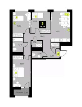 Трехкомнатная квартира в ЖК ''Мотивы'' на 4 этаже. Общая площадь: 76.2 кв.м. Высота потолков 2.7 м. Дом монолитный, многоподъездный, переменной этажности, от 5 до 14 этажей. Квартира находится во 2-й секции высотой 5 этажей в корпусе ГП-4. На этаже 5 квартир. В подъезде 1 грузовой лифт. В настоящее время строительство окончено, дом сдан в 4 квартале 2024 года. Оформление сделки по договору купли-продажи. Закрытая от автомобилей территория, безопасный двор и камеры видеонаблюдения - гаранты вашего спокойствия. Квартал будет располагать богатой инфраструктурой: на первых этажах разместятся магазины, пекарни, кофейни, пункты выдачи, аптеки, детские центры, цветочные салоны и многое другое, что сделает жизнь поистине комфортной. Рядом находится парк общей площадью почти 5000 м², в котором располагаются локации для игр и отдыха жителей, здесь можно совершить утреннюю пробежку или прогуляться после рабочего дня. В парке есть зона воркаута с тренажерами для взрослых, игровые комплексы с горками и канатный комплекс для детей разных возрастов, качели и лавочки для отдыха, площадки для командных видов спорта и для панна-футбола. В ЖК ''Мотивы'' всё продумано до мелочей: светлые холлы входных групп, оформленные в едином стиле, просторные колясочные, лапомойки для питомцев. На территории комплекса находятся 2 8-ми этажных паркинга и более 1000 м/м на открытой парковке. Жилой комплекс находится в одном из экологически благоприятных районов Тюмени, недалеко от Плехановского бора. При этом до центра города можно добраться за 15 минут, а до международного аэропорта Рощино за 13 минут. Окончание строительства: ГП 1, 2, 3, 4 сдача до конца 2024 года, ГП 6, 7, 8 сдача 2 квартал 2026 года. #2mDWEM