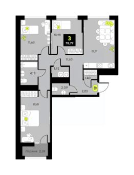 3-комн. квартира в ЖК ''Мотивы'' на 3 этаже. Общая площадь: 75.7 кв.м. Высота потолков 2.7 м. Дом монолитный, многоподъездный, переменной этажности, от 5 до 14 этажей. Квартира находится во 2-й секции высотой 5 этажей в корпусе ГП-4. На этаже 5 квартир. В подъезде 1 грузовой лифт. На сегодняшний день строительство окончено, дом сдан в 4 квартале 2024 года. Оформление сделки по договору купли-продажи. Закрытая от автомобилей территория, безопасный двор и камеры видеонаблюдения - гаранты вашего спокойствия. Квартал будет располагать богатой инфраструктурой: на первых этажах разместятся магазины, пекарни, кофейни, пункты выдачи, аптеки, детские центры, цветочные салоны и многое другое, что сделает жизнь поистине комфортной. Рядом находится парк общей площадью почти 5000 м², в котором располагаются локации для игр и отдыха жителей, здесь можно совершить утреннюю пробежку или прогуляться после рабочего дня. В парке есть зона воркаута с тренажерами для взрослых, игровые комплексы с горками и канатный комплекс для детей разных возрастов, качели и лавочки для отдыха, площадки для командных видов спорта и для панна-футбола. В ЖК ''Мотивы'' всё продумано до мелочей: светлые холлы входных групп, оформленные в едином стиле, просторные колясочные, лапомойки для питомцев. На территории комплекса находятся 2 8-ми этажных паркинга и более 1000 м/м на открытой парковке. Жилой комплекс находится в одном из экологически благоприятных районов Тюмени, недалеко от Плехановского бора. При этом до центра города можно добраться за 15 минут, а до международного аэропорта Рощино за 13 минут. Окончание строительства: ГП 1, 2, 3, 4 сдача до конца 2024 года, ГП 6, 7, 8 сдача 2 квартал 2026 года. #zmd4EU