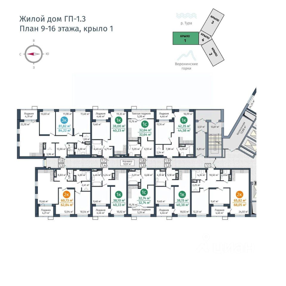 52 м² · Этаж 1 из 14
