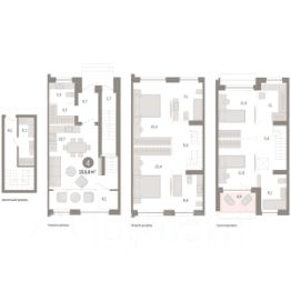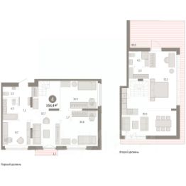 Четырехкомнатная квартира от застройщика с предчистовой отделкой в ЖК ''Дом у озера'' на 2 этаже. Общая площадь: 220.77 кв.м. Высота потолков 2.7 м. Дом монолитный, многоподъездный, переменной этажности, от 2 до 8 этажей. Квартира находится в 1-й секции высотой 2 этажа в корпусе 3. На этаже 2 квартиры. Окончание строительства - 2 квартал 2027 года. Оформление сделки по договору долевого участия. Продаётся с паркингом. Двухуровневая квартира с кухней-гостиной и четырьмя спальнями в Доме у озера. Особенности планировки: двухуровневая, окна на две стороны, окно в коридоре, отдельный вход, предчистовая отделка, разнесённые спальни, стактхаус, терраса на крыше. квартиры в нашей базе: ДМУ03-Ж1.2.1. ''Дом у озера'' является продолжением ''Европейского квартала''. Он расположен в центре заречного района города. В 2030 году здесь появится квартал, состоящий из урбан-вилл, таунхаусов, секционных домов и башни. Вокруг уже сформирована необходимая инфраструктура: детские сады, школы, спортивный комплекс, продуктовые магазины, аптеки, кофейни, рестораны и салоны красоты. Путь до центра города занимает 7 минут на машине. Озеро Тихое — ценный рекреационный ресурс. Брусника вернула ему прежнее значение и сделала новой точкой притяжения для жителей микрорайона. Ключевым элементом концепции благоустройства стала вода. В каждой части квартала архитекторы нашли для нее свою форму. Вдоль пешеходных улиц разместили искусственные ручьи, на центральной площади — фонтан и дождевые сады.Основная точка притяжения жителей — озеро и выходящий на его сторону променад. Здесь мы организуем смотровые площадки и расположим летние террасы кафе и ресторанов.Тесную связь застройки с ландшафтом обеспечивает многоуровневое озеленение. Буфер из деревьев и кустарников по периметру квартала превращается в естественный ветрозащитный экран. Такое решение позволяет создать на территории ''Дома у озера'' комфортный микроклимат. Подъезды ''Дома у озера'' с прозрачными входными группами и большими лифтами. Для мест общего пользования архитекторы разработали новую интерьерную коллекцию, вдохновленную эклектичными восточными мотивами. В отделке сочетаются коричневый, желтый и белый цвета, повторяющие колористические решения фасадов.Декоративные перегородки, установленные в лобби, напоминают машрабию — элемент арабской архитектуры в виде узорной решетки. За счет мягкой мебели, многоуровневого освещения теплых оттенков и предметов декора (например, зеркал и картин) холлы воспринимаются как продолжение квартиры. #25dVS4