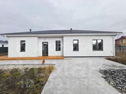 Продается уютный и современный дом формата 3+ для тех, кто мечтает о комфортной жизни вдали от городской суеты!Основные характеристики:Площадь участка: 6 соток, идеально разработанных для сада, уютной зоны барбекю или отдыха на свежем воздухе с семьей и друзьями.Расположение: всего 20 минут на машине от города, в живописном месте с чистым воздухом. Регулярно ходят общественный транспорт и школьный автобус.Категория земли: ИЖС.Дом, где продумано всё до мелочей:Фундамент: монолитная плита, пеноплекс, арматура — основа надежности и долговечности.Материал стен: керамзитоблок, утепленный минеральной плитой и облицованный фасадной штукатуркой, сохраняет тепло зимой и прохладу летом.Отопление: теплые полы по всему дому создадут уют в любую погоду. На террасе предусмотрена возможность обогрева полов — наслаждайтесь комфортом круглый год.Коммуникации: электричество, газовое отопление, септик и скважина с чистой водой — всё уже подключено.Функциональная и светлая планировка:Спальни: две просторные комнаты по 13 м² и мастер-спальня 12,5 м² с гардеробной зоной (3,2 м²) и собственным санузлом (4,5 м²).Кухня-гостиная: 37,4 м² — идеальное место для семейных обедов и уютных вечеров у окна с видом на природу.Дополнительно: дополнительный санузел 4,5 м² и удобная постирочная 5,7 м² — всё для вашего удобства.Идеальное место для жизни:Этот дом — сочетание уюта, современного стиля и природной гармонии. Здесь вы сможете наслаждаться утренним кофе на террасе, проводить вечера с семьей у камина и дышать свежим воздухом в любое время года.Условия покупки:Подходит для покупки по семейной ипотеке.Приезжайте и ощутите атмосферу уюта и тепла, которая ждет именно вас! Номер предложения: 34144.