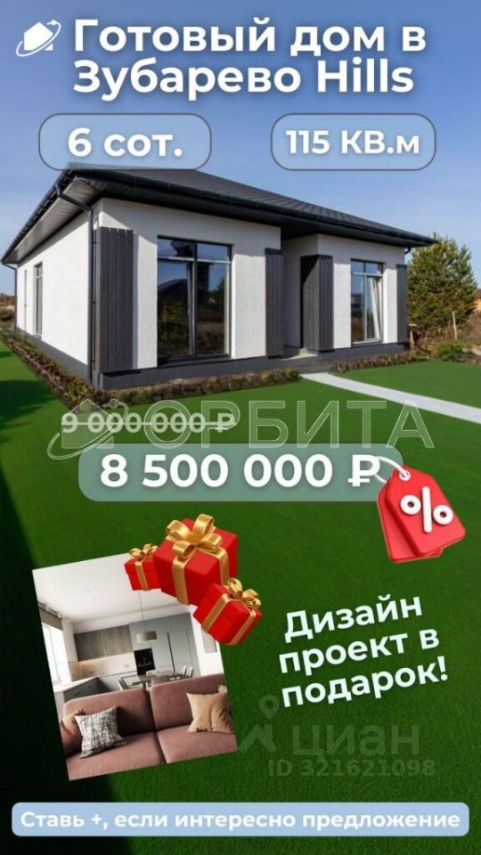 Продается новый дом в Зубарево Хиллс. Ипотека от 6%. Ваша мечта о жизни в гармонии с природой в тихом и живописном месте — готова к переезду! Это идеальный дом для семьи из 3-4 человек в престижном коттеджном поселке ''Зубарево Хиллс''. Почему этот дом — отличный выбор: Для семьи: Эргономичные спальни обеспечат личное пространство для каждого, а просторная кухня-гостиная со вторым светом, камином и выходом на крытую террасу станет сердцем дома для уезных вечеров в кругу близких. Полная готовность: Дом сдан! Вы избегаете долгого строительства. Выгодные условия: Доступно приобретение по ипотеке от 6% (IT, семейная, господдержка). Расположение — идеально: Один из самых востребованных районов с отличной транспортной доступностью. Закрытая территория, тупиковая улица — безопасность и тишина. Приятное окружение и прекрасные соседи. Комплектация и отделка: Полная внешняя готовность, подведены все коммуникации. Внутри выполнена улучшенная черновая отделка — идеальная база для чистового ремонта по вашему дизайну. Все инженерные системы разведены и готовы. Технические характеристики и особенности: Фундамент: надежная монолитная плита с ребрами жесткости. Стены: керамзитоблок + утеплитель для тепла и комфорта. Кровля: утепленная металлочерепица. Инженерия: своя скважина с системой очистки, переливной септик 12 м. Отопление: комфортный теплый пол по всему дому! Энергия: газ подведен к участку (возможно подключение). Звоните, чтобы назначить просмотр и сделать этот дом своим! Номер предложения: 63107.
