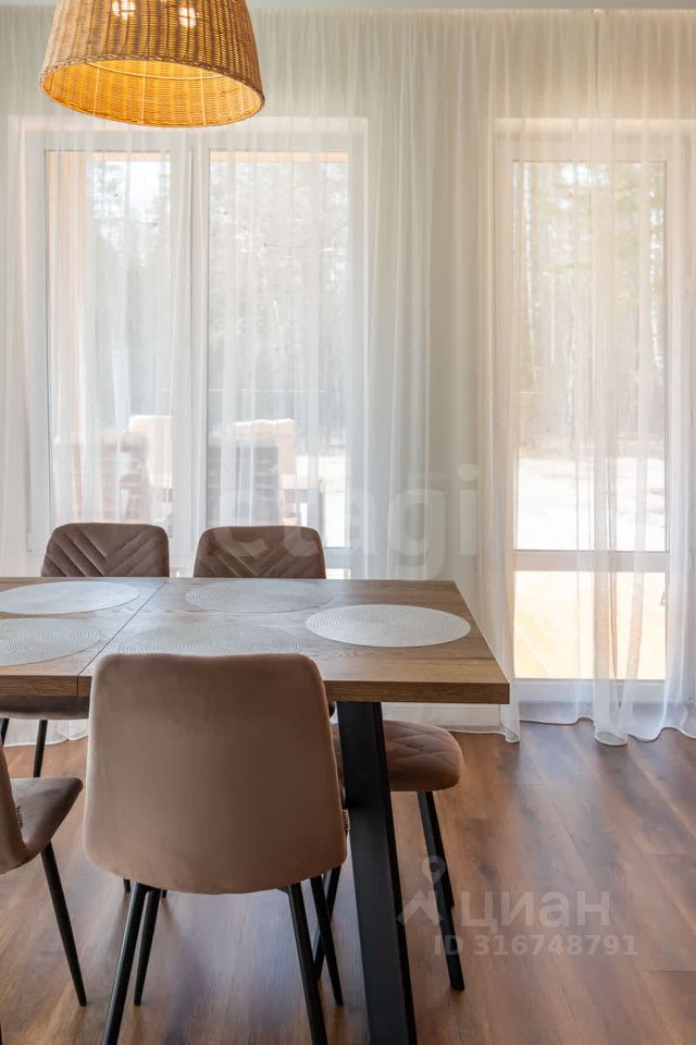Продается великолепный одноэтажный загородный дом в живописном коттеджном поселке ''Веванта Лайф'', расположенном у самого леса. О доме: Площадь дома составляет 103 кв.м., а его изюминкой является просторная терраса из лиственницы, где можно наслаждаться утренним кофе или вечерними закатами. Участок правильной прямоугольной формы площадью 11 соток окружен забором со всех сторон, что создает атмосферу уединения и безопасности. Большие панорамные окна наполняют дом светом и открывают захватывающий вид на окружающий лес, где можно услышать пение птиц и насладиться красотой природы. Внутри дома вас ждет просторная кухня-гостиная площадью 34 м² с выходом на террасу, а также три уютные изолированные спальни. Здесь также предусмотрены большой санузел, гардеробная и котельная с дополнительным санузлом. Весь дом выполнен в современном стиле: установлен кухонный гарнитур, посудомоечная машина, смонтирована система водоочистки и электрокотел марки SТОUТ. О поселке: Поселок активно развивается: три четверти территории уже застроены, здесь есть детская площадка и зона для воркаут-тренировок. В округе много молодых семей с детьми, а автобус забирает детей в школу прямо из поселка. Дорога до города по Московскому тракту занимает всего 20 минут, а ближайший супермаркет находится всего в 400 метрах. На благоустроенной придомовой территории высажены хвойные деревья, уложен рулонный газон и предусмотрено парковочное место. Установлены откатные ворота с двигателем DооrНаn и дистанционным управлением для вашего удобства. Скважина глубиной 28 м, биосептик и подведенный газ делают жизнь в этом доме комфортной и беззаботной. Этот загородный дом — идеальное место для тех, кто ценит уют, природу и комфорт! Заезжайте и живите без забот! МЫ ГАРАНТИРУЕМ ФИНАНСОВУЮ БЕЗОПАСНОСТЬ ДЛЯ НАШИХ КЛИЕНТОВ. Код пользователя: 14318 Номер в базе: 6792059