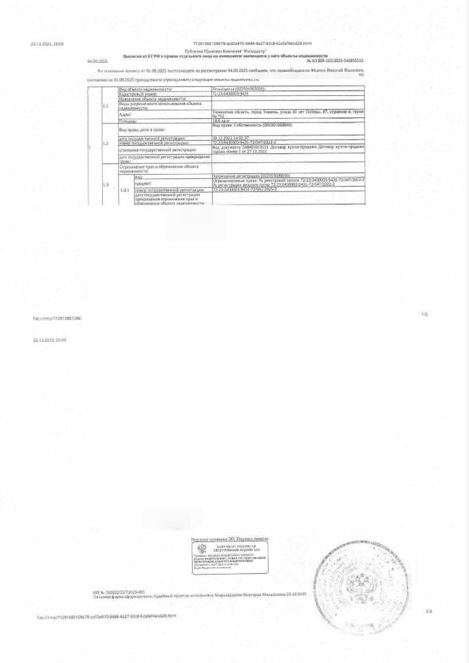 Данные получены с сайта ГИС Торги. Должник: Зозуля В.В., собственник: Зозуля В.В. Лот: Нежилое помещение (гараж), площадь 22,7 кв.м., кадастровый номер: 72:23:0218004:5071, г. Тюмень, ул. Котовского, д. 1, корп. 2, стр. 2, гараж 30, н/ц: 1700400 р., з-к: 255060 р., код: 0001, рег. 72-011252
