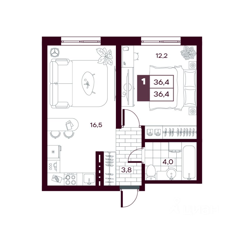 38 м² · Этаж 4 из 15