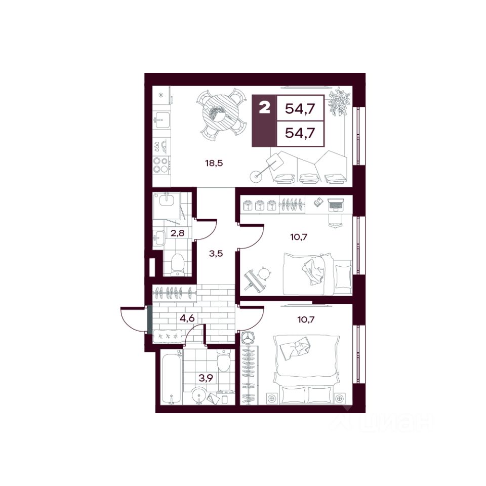 54 м² · Этаж 2 из 14