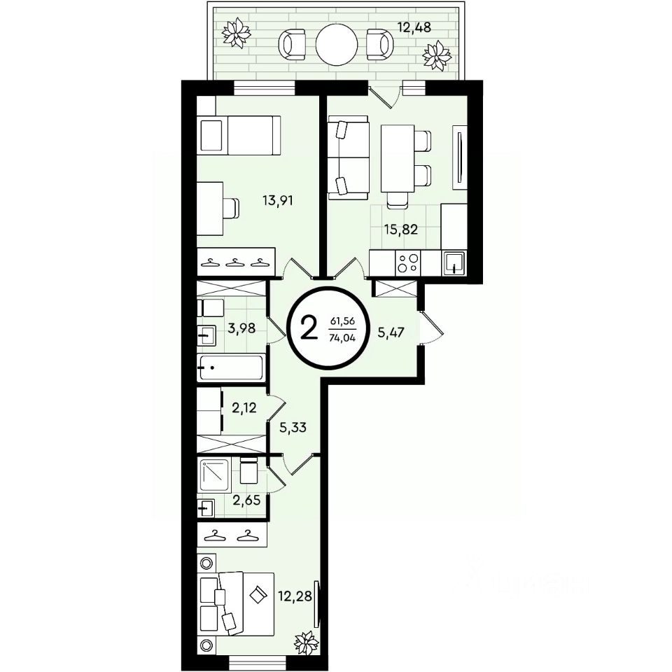 Двухкомнатная квартира от застройщика с предчистовой отделкой в ЖК ''Мотивы'' на 6 этаже. Общая площадь: 62.37 кв.м., жилая: 24.71 кв.м., площадь просторной кухни-столовой: 19.53 кв.м. Комнаты изолированные, все окна выходят на одну сторону. В квартире одна лоджия, два совмещенных санузла. Высота потолков 2.7 м. Квартира будет сдаваться с предчистовой отделкой White Box: выровнены и оштукатурены стены, проведено электричество и отопление, установлены радиаторы. Вы также можете приобрести квартиру с ремонтом от застройщика, представленным в трех цветовых решениях Scandi, Wood и Coffee и включающим ламинат, обои под покраску, двери, натяжной потолок и санузел с сантехникой. При желании вы можете заказать отделку под ключ, варианты возможных решений представлены в альбоме фотографий. Квартира находится в корпусе ГП-2. Дом монолитный, одноподъездный, высотой 7 этажей. На этаже 5 квартир. В подъезде 1 пассажирский и 1 грузовой лифт. В настоящее время строительство завершено, дом сдан в 4 квартале 2024 года. Оформление сделки по договору купли-продажи. Закрытая от автомобилей территория, безопасный двор и камеры видеонаблюдения - гаранты вашего спокойствия. Квартал будет располагать богатой инфраструктурой: на первых этажах разместятся магазины, пекарни, кофейни, пункты выдачи, аптеки, детские центры, цветочные салоны и многое другое, что сделает жизнь поистине комфортной. Рядом находится парк общей площадью почти 5000 м², в котором располагаются локации для игр и отдыха жителей, здесь можно совершить утреннюю пробежку или прогуляться после рабочего дня. В парке есть зона воркаута с тренажерами для взрослых, игровые комплексы с горками и канатный комплекс для детей разных возрастов, качели и лавочки для отдыха, площадки для командных видов спорта и для панна-футбола. В ЖК ''Мотивы'' всё продумано до мелочей: светлые холлы входных групп, оформленные в едином стиле, просторные колясочные, лапомойки для питомцев. На территории комплекса находятся 2 8-ми этажных паркинга и более 1000 м/м на открытой парковке. Жилой комплекс находится в одном из экологически благоприятных районов Тюмени, недалеко от Плехановского бора. При этом до центра города можно добраться за 15 минут, а до международного аэропорта Рощино за 13 минут. Окончание строительства: ГП 1, 2, 3, 4 сдача до конца 2024 года, ГП 6, 7, 8 сдача 2 квартал 2026 года. #2S0W6a