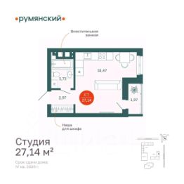 Продаётся квартира площадью 24.7 м2 в жилом комплексе ''Айрис''. Квартира находится на 9 этаже, жилая площадь квартиры 9.6 м2, площадь кухни-ниши — 5.9 м2Срок сдачи — III кв. 2027 Жилой комплекс ''Айрис'' — это: - фиджитал-квартал в Тюмени - дома высотой от 7 до 25 этажей - квартиры с системой ''Умный дом'' - цифровые технологии как элемент благоустройства Окружение В нескольких минутах ходьбы от дома — парк ''Комарово'' с волейбольной площадкой, открытым кинотеатром, зонами для барбекю и катком. Неподалеку от Airis находится центр иппотерапии, где можно покататься на лошадях и взять уроки верховой езды. На территории Airis появится собственный парк с прогулочными аллеями. Инфраструктура В 5-10 минутах от квартала открыты 2 детских сада и гимназия. На шопинг можно отправиться в торговые комплексы ''Колумб'' и ''Кристалл'' — они находятся недалеко от дома. Благоустройство Уютный двор — приватное пространство для жителей. В беседках можно будет почитать книгу в тишине, а в тени деревьев устроиться на пикник. На крыше многоуровневого паркинга будет лаунж-зона с кинотеатром, баскетбольная площадка и воркаут-пространство, где можно позаниматься с виртуальным тренером — достаточно отсканировать код. Лобби Интерьеры лобби выполнены в пастельных тонах с элементами фиджитал-решений. Для отдыха и ожидания гостей создана лаунж-зона. Также есть гостевые санузлы. Колясочные Возвращайтесь налегке после прогулки с малышом — оставить коляску можно в специальном помещении на первом этаже. Кладовые Для сезонных и габаритных вещей предусмотрены отдельные кладовые на цокольном этаже. В каждом помещении уже проведено электричество и выполнена стяжка пола. Паркинг На территории — два многоуровневых наземных паркинга. Один из них примыкает к домам — из него можно напрямую пройти в парадные. Планировки Планировки квартала — от компактной студии до сити-хауса с собственным палисадником — соответствуют любым жизненным сценариям. Можно выбрать квартиры с террасами и готовыми дизайнерскими интерьерами.