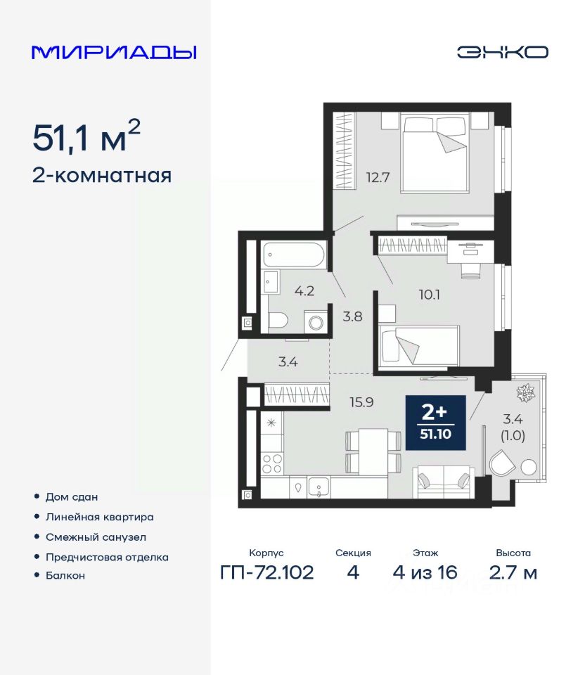 51 м² · Этаж 4 из 16