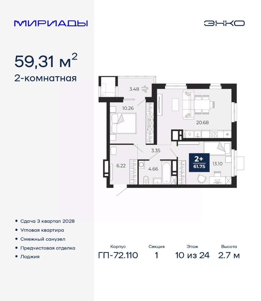 59 м² · Этаж 10 из 24