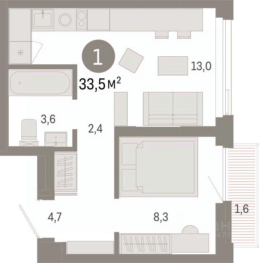1-комн. квартира от застройщика с предчистовой отделкой в ЖК ''Зарека'' на 20 этаже. Общая площадь: 33.53 кв.м., жилая: 8.3 кв.м., площадь просторной кухни-гостиной: 13 кв.м. Все окна выходят на одну сторону. В квартире один балкон, один совмещенный санузел. Высота потолков 2.7 м. Квартира находится в корпусе 5-1. Дом монолитный, одноподъездный, высотой 25 этажей. На этаже 12 квартир. В подъезде 2 пассажирских и 1 грузовой лифт. Окончание строительства - 1 квартал 2027 года. Оформление сделки по договору долевого участия. Квартира с кухней-гостиной и одной спальней в жилом районе ''Зарека''. Особенности планировки: предчистовая отделка. квартиры в нашей базе: ЗРК05.1-Ж1.20.1. Проект На планировочную структуру ''Зареки'' повлияла близость к автомобильному мосту Челюскинцев. Мы расположили жилые здания так, чтобы они постепенно удалялись от проезжей части. Приём напоминает лесенку: чем сильнее мост возвышается над участком застройки, тем дальше по отношению к нему стоят дома. Этот ступенчатый сдвиг позволил нам сформировать буфер между кварталами и оживлённой магистралью. Мы намерены высадить здесь высокие деревья и создать дополнительную защиту от дорожных шума и пыли. В границах нашего участка мы намерены разместить школу и два встроенных детских сада на 135 и 150 мест. Общественные пространства С севера на юг территорию будет пронизывать пешеходный бульвар. Мы мыслим это общественное пространство как главный центр притяжения. На нём будут сосредоточены основные детские игровые и спортивные зоны, места для встреч и спокойного отдыха. Он также сыграет роль мостика, ведущего к другим нашим проектам — ''Европейскому кварталу'' и ''Дому у озера''. Одна из базовых идей мастер-плана касается береговой линии. Сегодня озеленение этой территории носит стихииныи характер, а прямому доступу к Туре препятствует дамба. Мы хотим благоустроить пространства у воды и открыть их для людей. Архитекторы спроектировали систему многоярусных троп и спусков к реке, смотровые площадки и места для активного отдыха и пикников. #2M5BBg