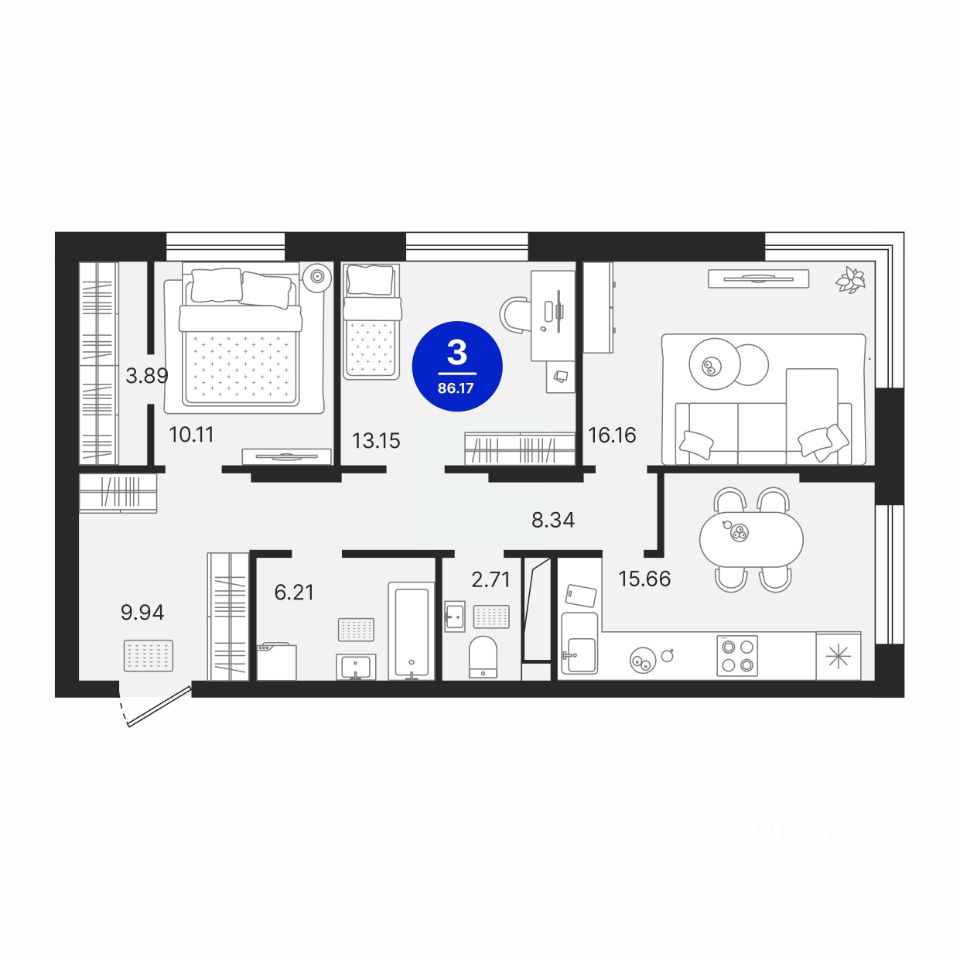 Квартира располагается в ГК ''Чистые Пруды'' от ''Паритет девелопмент''. Это флагманский проект компании в Тюмени. Расположение вдали от шумных улиц и оживленного центра создает ощущение жизни на природе и окружает тишиной и спокойствием. Есть вся необходимая социальная и коммерческая инфраструктура: магазины и сфера услуг на первых этажах. Школы, сады, поликлиника, парки в шаговой доступности. Квартал строится в районе Новой Лесобазы. Рядом выезд на объездную, что существенно экономит время. Поездка до центра города на автомобиле занимает 15-20 минут. Городские кварталы ''Чистые Пруды'' сформирован из домов переменной этажности и многоуровневых паркингов. Ввод 1 очереди строительства запланирован на II кв. 2028 года. Всё благоустройство квартала представлено двумя функциональными зонами: приватная внутри дворовая и общественная. Каждый закрытый двор имеет выход на единую променадную зону - бульвар. Концепция благоустройства основана на принципе модульности, что формирует основную идею приватности. Приватность проекта подчеркивает его особенный климат внутри. Модульное благоустройство позволит максимально эффективно использовать пространство двора и удовлетворить потребности различных категорий жителей. В квартирах базово выполнена улучшенная черновая отделка, которая включает в себя: выровненные стены, стяжка пола с шумоизоляцией, горизонтальная разводка отопления, установлены счетчики с телеметрией, окна с 5-камерным профилем и надежные входные двери. При желании можно добавить ремонт от застройщика и включить его в стоимость ипотеки, что позволит сэкономить на стройматериалах и переехать сразу после получения ключей. Характеристики квартиры: этаж - 13 количество комнат - 3 номер помещения - 258 площадь квартиры - 53,2 кв.мГармоничные пропорции и большие окна наполняют пространство светом, создавая уютную атмосферу. Умное зонирование позволяет удобно организовать как рабочую, так и жилую зоны, что особенно важно для современных жителей. Санузел спроектирован с учетом всех потребностей: здесь есть ванна и место для стиральной машины. Каждый метр квартиры используется с максимальной эффективностью, что делает эту планировку отличным выбором для тех, кто ценит комфорт и удобство.