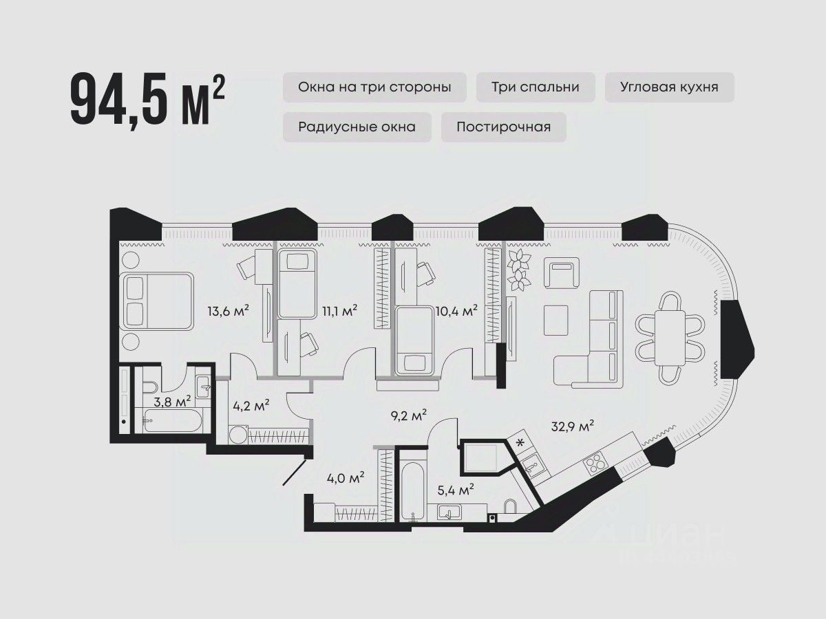 94 м² · Этаж 3 из 9