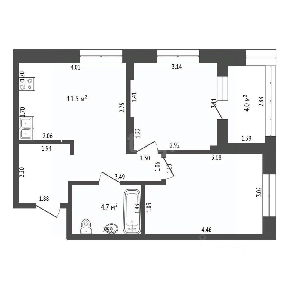 43 м² · Этаж 11 из 14