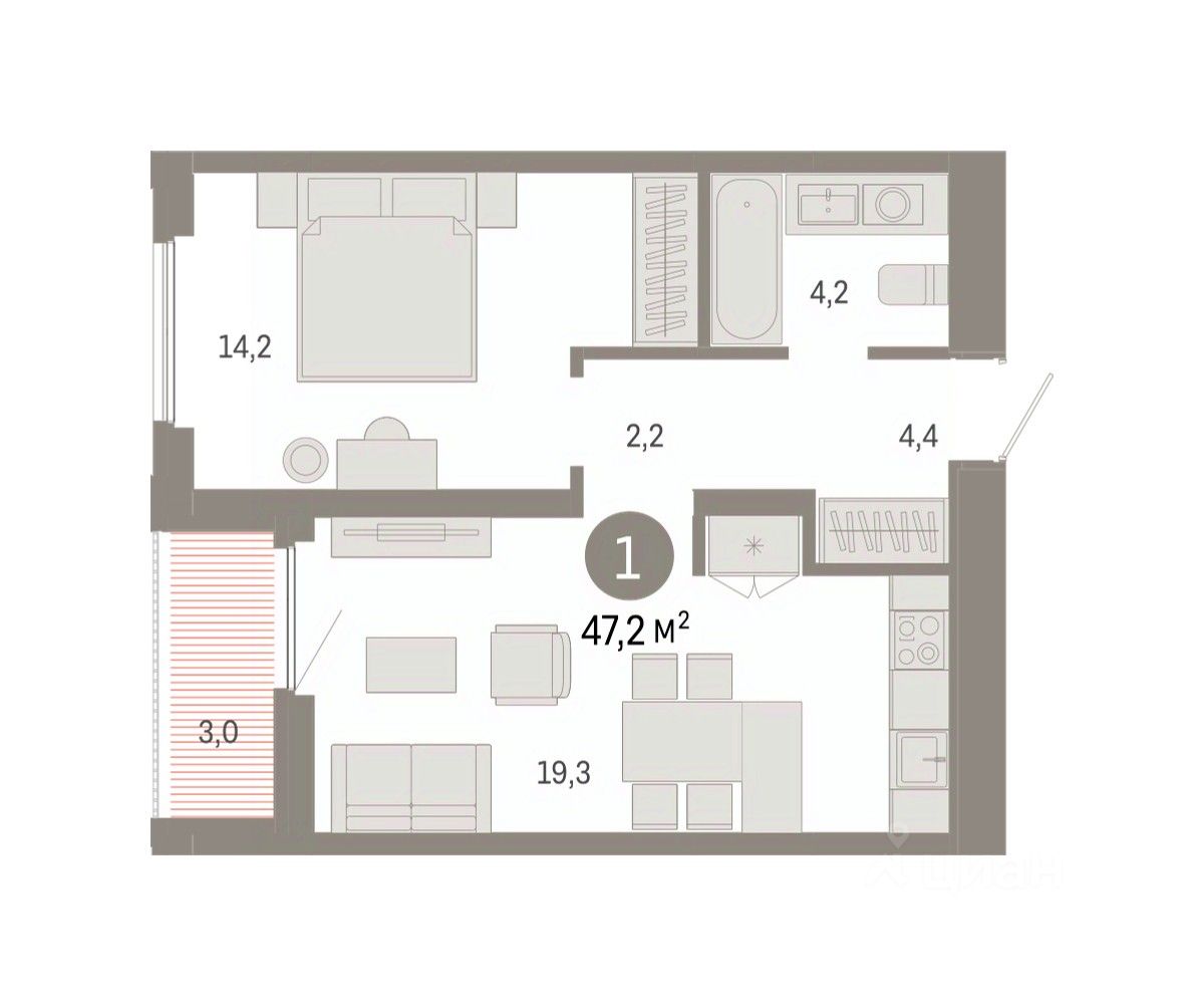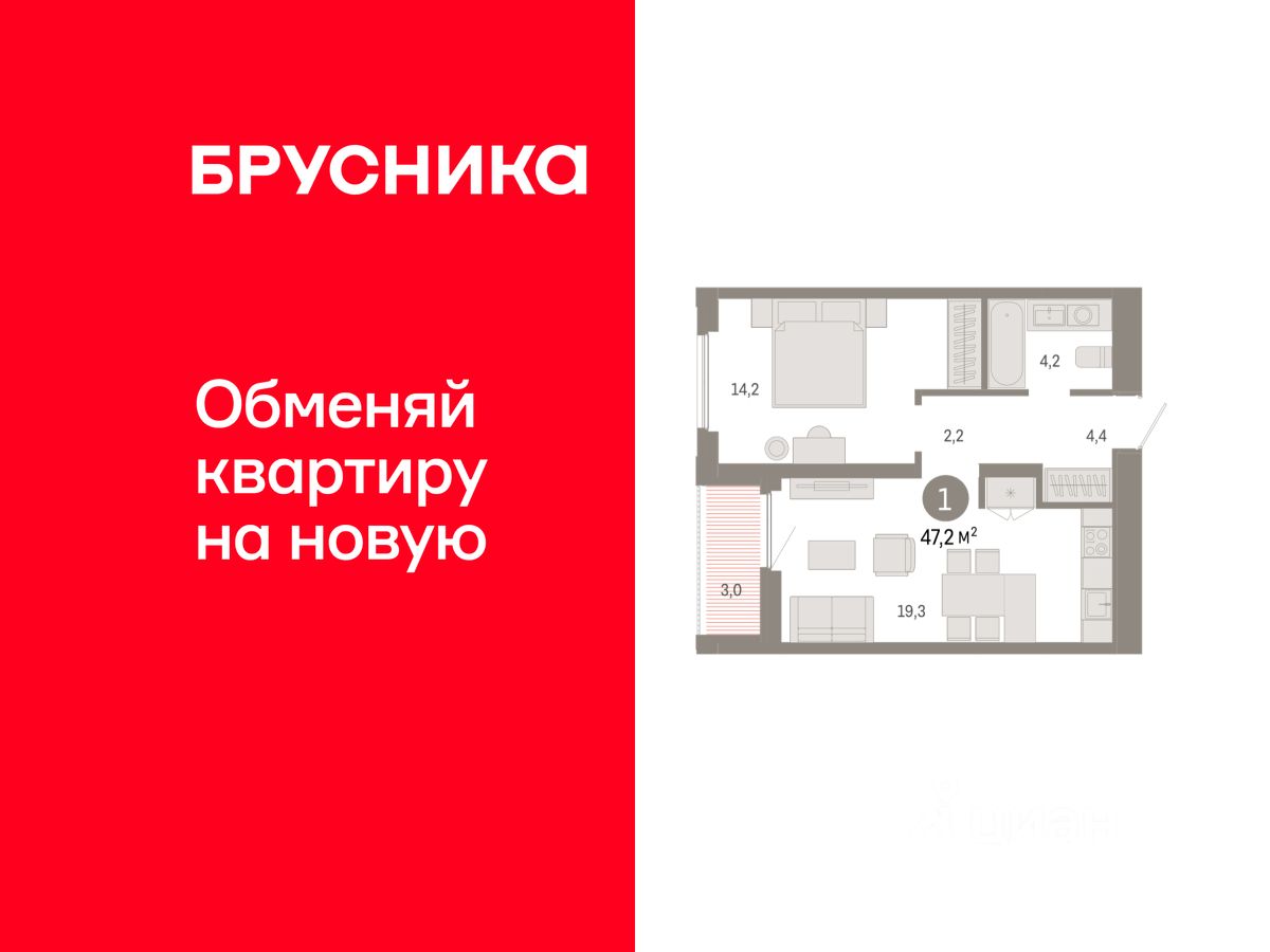 Продается однокомнатная квартира с предчистовой отделкой в ЖК ''Зарека'' на 16 этаже. Общая площадь: 47.24 кв.м. Высота потолков 2.7 м. Дом монолитный, многоподъездный, переменной этажности, от 6 до 16 этажей. Квартира находится в 1-й секции высотой 16 этажей в корпусе 5-2. На этаже 8 квартир. В подъезде 1 пассажирский и 1 грузовой лифт. Окончание строительства - 4 квартал 2026 года. Оформление сделки по договору долевого участия. Продаётся с паркингом и кладовой. Квартира с кухней-гостиной и одной спальней в жилом районе ''Зарека''. Особенности планировки: предчистовая отделка. квартиры в нашей базе: ЗРК05.2-Ж1.16.2. Проект На планировочную структуру ''Зареки'' повлияла близость к автомобильному мосту Челюскинцев. Мы расположили жилые здания так, чтобы они постепенно удалялись от проезжей части. Приём напоминает лесенку: чем сильнее мост возвышается над участком застройки, тем дальше по отношению к нему стоят дома. Этот ступенчатый сдвиг позволил нам сформировать буфер между кварталами и оживлённой магистралью. Мы намерены высадить здесь высокие деревья и создать дополнительную защиту от дорожных шума и пыли. В границах нашего участка мы намерены разместить школу и два встроенных детских сада на 135 и 150 мест. Общественные пространства С севера на юг территорию будет пронизывать пешеходный бульвар. Мы мыслим это общественное пространство как главный центр притяжения. На нём будут сосредоточены основные детские игровые и спортивные зоны, места для встреч и спокойного отдыха. Он также сыграет роль мостика, ведущего к другим нашим проектам — ''Европейскому кварталу'' и ''Дому у озера''. Одна из базовых идей мастер-плана касается береговой линии. Сегодня озеленение этой территории носит стихииныи характер, а прямому доступу к Туре препятствует дамба. Мы хотим благоустроить пространства у воды и открыть их для людей. Архитекторы спроектировали систему многоярусных троп и спусков к реке, смотровые площадки и места для активного отдыха и пикников. #Z6gOZ2