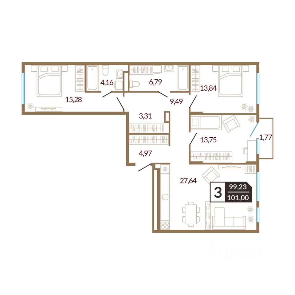 101 м² · Этаж 3 из 4