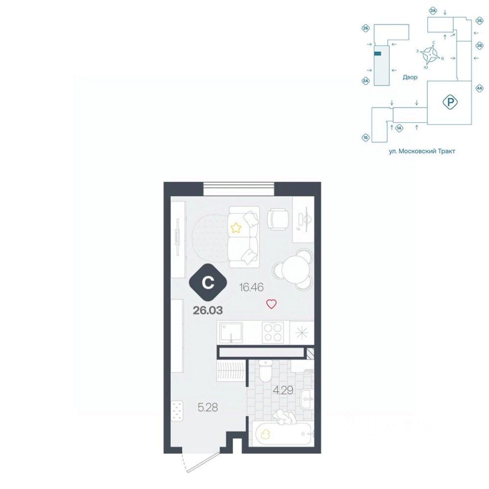 26 м² · Этаж 11 из 25