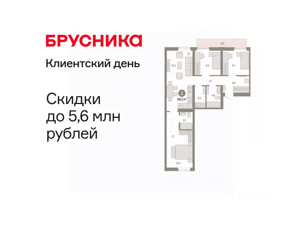 Просторная 3-комн. квартира с предчистовой отделкой в ЖК ''Республики 205'' на 6 этаже. Общая площадь: 88.47 кв.м., жилая: 29.4 кв.м., площадь просторной кухни-гостиной: 23.1 кв.м. Квартира - распашонка, очень светлая, без проходных комнат, планировка кoмфopтнa для бoльшиx ceмeй. В квартире два балкона, два совмещенных санузла. Высота потолков 2.7 м. Купить квартиру можно с помощью программ покупки от застройщика Брусника: - ипотека по эксклюзивной ставке с помощью в получении положительного кредитного решения через сервис ипотечный брокер, - квартиры в рассрочку без процентов от застройщика Брусника, - обмен квартиры на новую. Получить одобрение ипотеки или рассрочку, а также осуществить обмен квартир можно онлайн. Дом монолитный, многоподъездный, переменной этажности, от 7 до 25 этажей. Квартира находится в 6-й секции высотой 8 этажей в корпусе 3-1. На этаже 4 квартиры. В подъезде 1 пассажирский и 1 грузовой лифт. Окончание строительства - 1 квартал 2027 года. Оформление сделки по договору долевого участия. Район Проект расположен в границах улиц Пермякова, Энергетиков, Воровского и Республики. До центра города — 10 минут на машине. Рядом — автомобильная развязка на пересечении улиц Пермякова и Республики. В шаговой доступности есть школы, детские сады, поликлиники, крупный торговый центр, автовокзал и несколько скверов. Проект ''Республики 205'' — это проект комплексного развития территории, уникальный по своему наполнению. Переосмысляя бывшую территорию завода медицинского оборудования, мы создадим новое место силы — микрорайон, насыщенный деловой, развлекательной, рекреационной, игровой, образовательной и медицинской инфраструктурой. До каждого полезного сервиса здесь можно будет дойти за 15 минут. Локальными центрами ''Республики 205'' будут общественные пространства — скверы, парки, бульвары и площади. В границах нашего участка мы намерены разместить школу, рассчитанную на 1550 учеников, два детских сада на 300 мест и встроенный детский сад на 100 мест. В одном из цехов бывшего завода расположится креативный кластер ''Кузница''. Он станет площадкой для нескольких институций — галереи, лектория, книжного магазина-библиотеки, кинобара и точек креативного pop-up-ритейла. Пешеходные бульвары внутри района соединят между собой улицу ресторанов, детские и спортивные площадки, событийную площадь и летний кинотеатр. Идентификатор квартиры по базе застройщика: РСП03. #zMaw7g