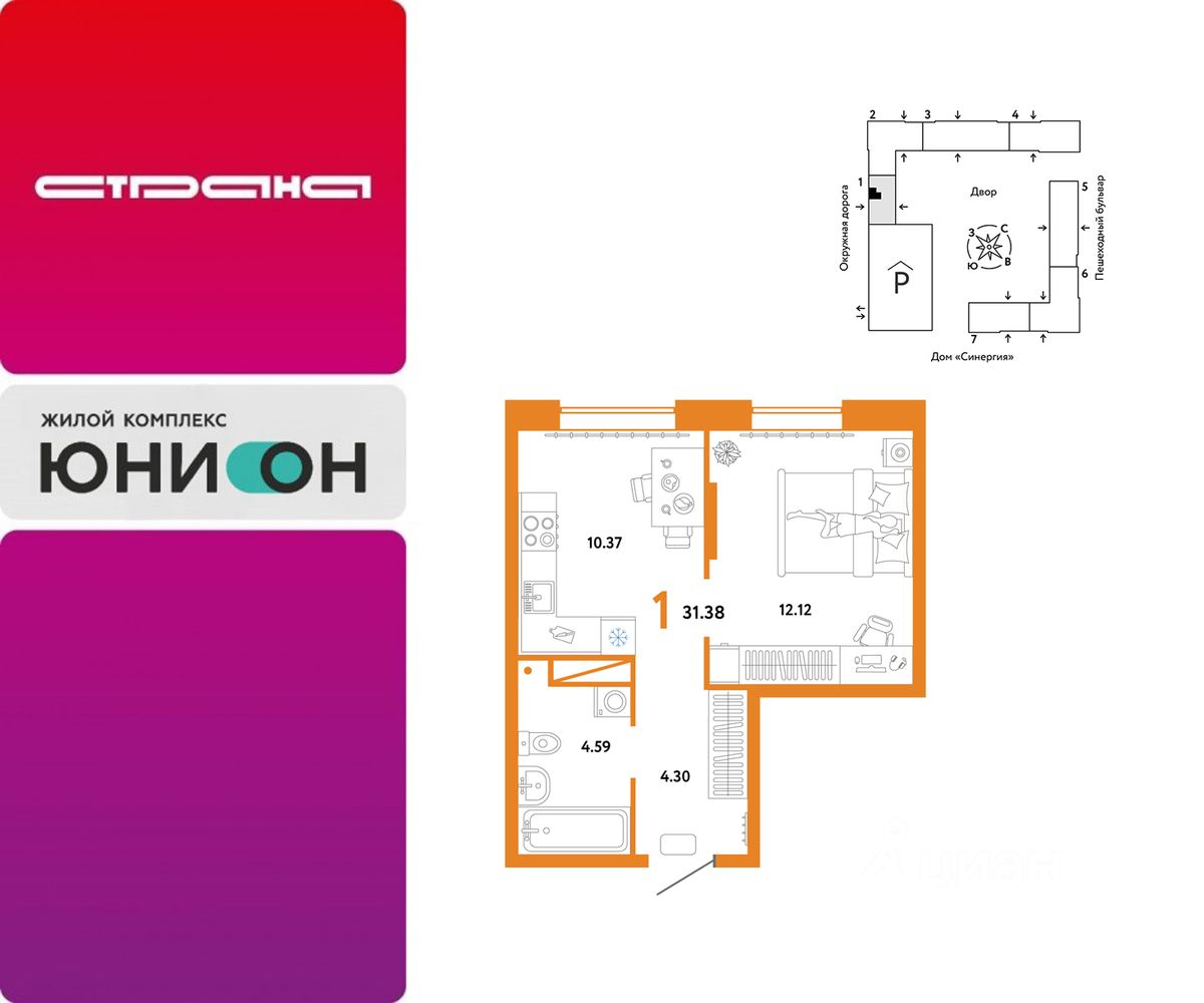 1-комн. квартира от застройщика в ЖК ''Мидгард на Уездной'' на 8 этаже. Квартира без отделки, новый собственник может сделать ремонт по своему проекту. Общая площадь: 42.23 кв.м., жилая: 10.98 кв.м., площадь просторной кухни-столовой: 20.18 кв.м. Все окна выходят на одну сторону. В квартире один балкон, один совмещенный санузел. Высота потолков 2.72 м. Дом монолитный, черырехподъездный, переменной этажности, от 9 до 15 этажей. Квартира находится в 4-й секции высотой 15 этажей в корпусе ГП-1. На этаже 9 квартир. В подъезде 1 пассажирский и 1 грузовой лифт. Окончание строительства - 3 квартал 2027 года. Оформление сделки по договору долевого участия. ''Мидгард на Уездной'' - современный проект комфорт-класса, расположенный на первой линии Тюменской слободы, с видом на развязку Московского тракта. Он сочетает в себе современные архитектурные решения и комфортное проживание в гармонии с природой. Жилой комплекс находится в перспективном районе, который отличается транспортной доступностью: до крупных торговых центров ''Кристалл'' и ''Колумб'' можно добраться за 10 минут, а до центра города - за 15 минут. В шаговой доступности школы, детские сады, торговые центры и парки, что делает локацию идеальной для комфортной жизни. Проектом предусмотрены дома с дизайнерскими входными зонами и планировочными решения для любого сценария жизни с возможностью включить в ипотечный платеж ремонт, мебель и технику от застройщика. Закрытый двор и собственная аллея вдоль жилого комплекса позволят насладиться тишиной вдали от суеты большого города. #26sD31