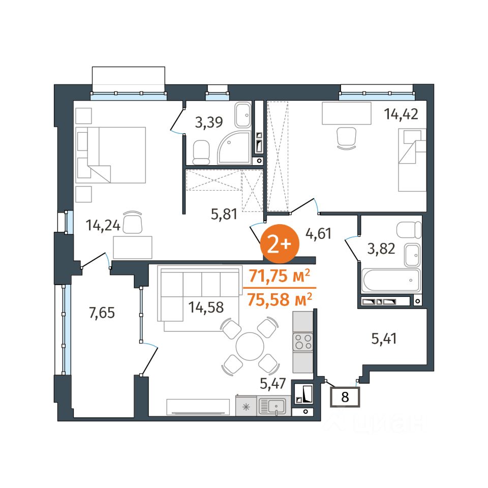 59 м² · Этаж 1 из 14
