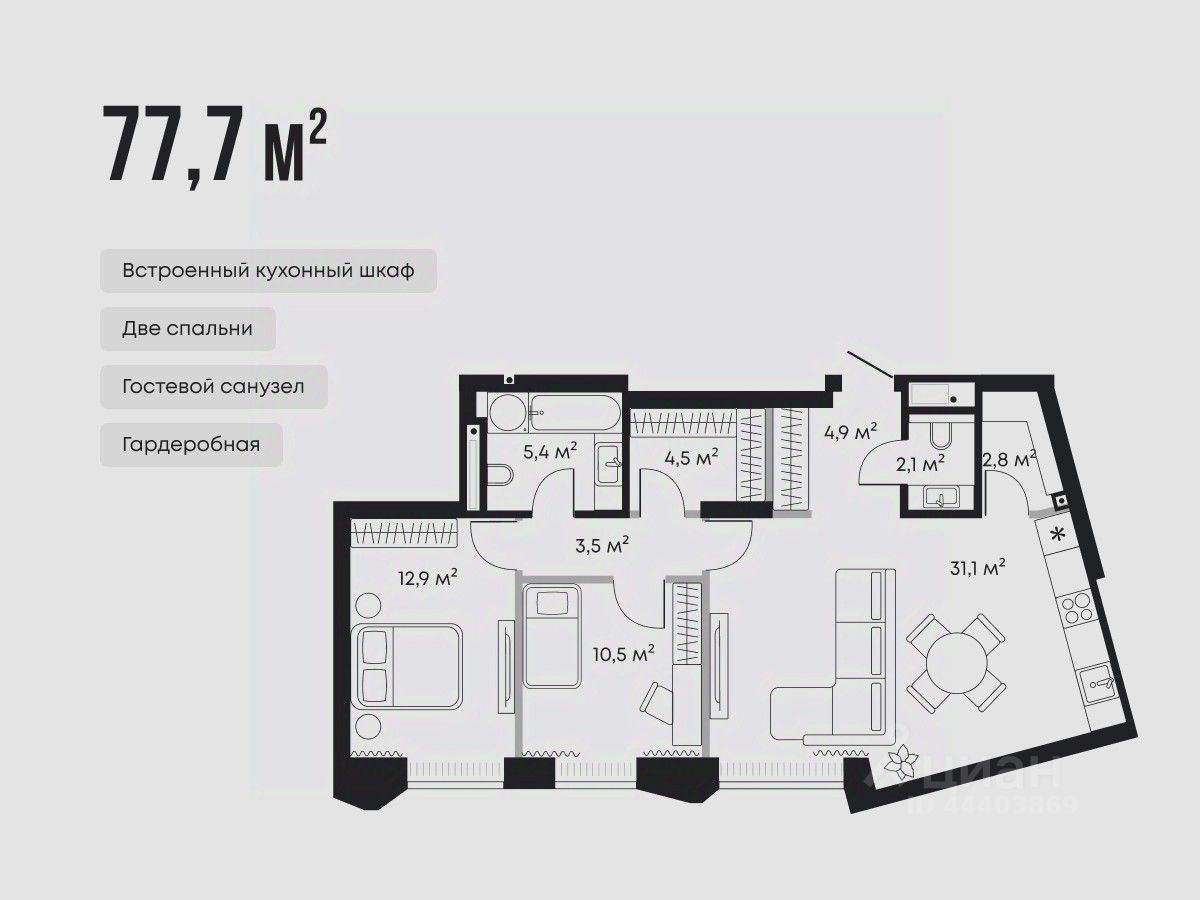 77 м² · Этаж 2 из 9