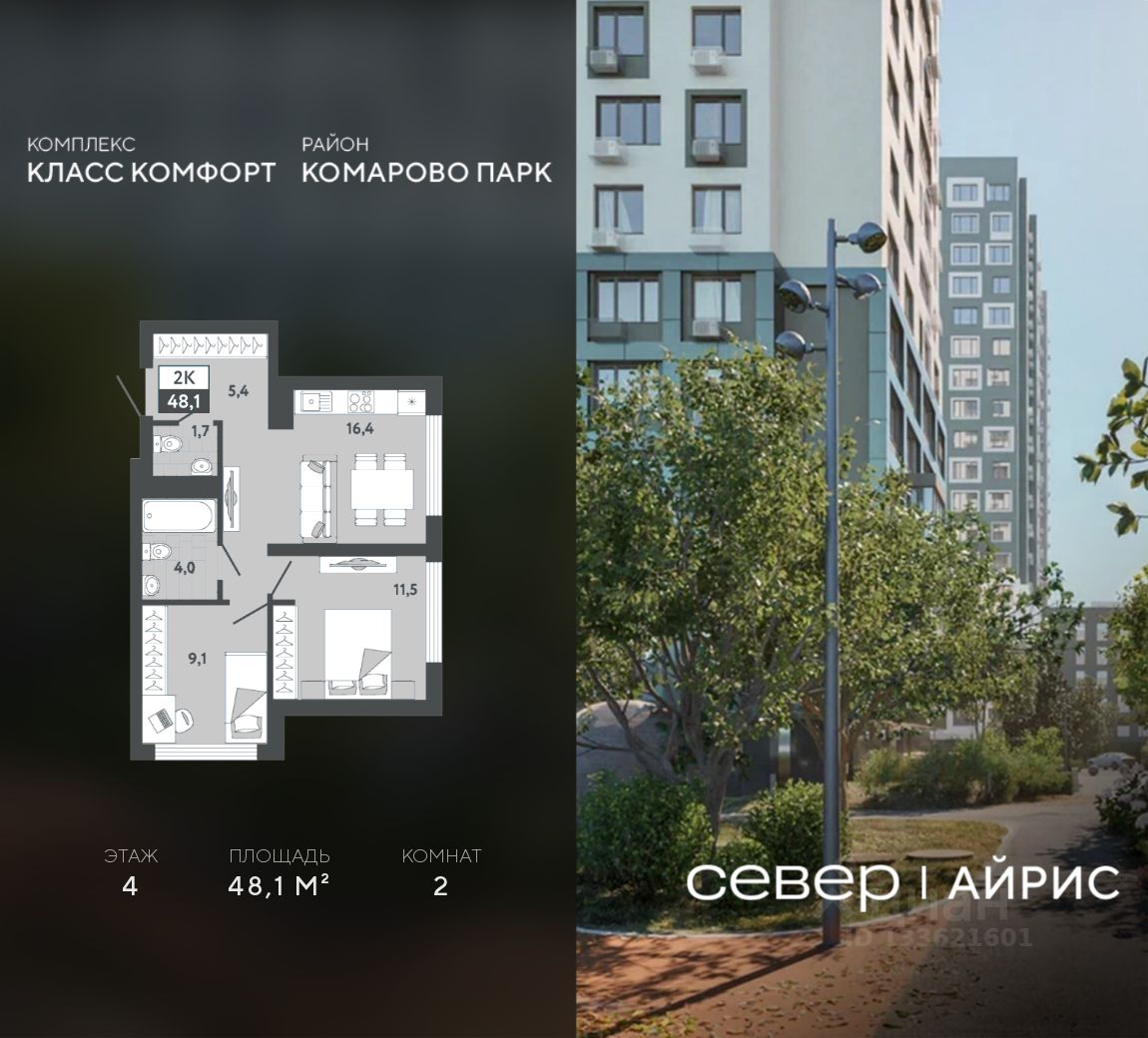 48 м² · Этаж 4 из 15