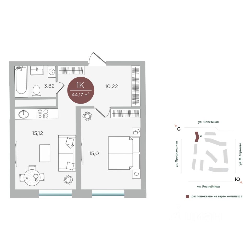 44 м² · Этаж 5 из 17