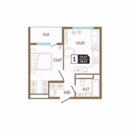 Квартира с кухней-гостиной и одной спальней в Октябрьском на Туре. Особенности планировки: предчистовая отделка, тёплая лоджия. квартиры в нашей базе: ОКТ-08-6-6.15.7. Район Проект расположен на берегу реки, в одном из самых живописных и экологичных районов Тюмени. За последние годы облик района изменился. По соседству с индивидуальной застройкой выросли многоквартирные дома. При проектировании ''Октябрьского на Туре'' нашей приоритетной задачей стало сохранение природного ландшафта: мы постарались деликатно вписать в него современную архитектуру. Квартал удачно расположен с точки зрения дорожной инфраструктуры. На автомобиле путь до центра города составит 15 минут. Добраться до набережной и главных тюменских достопримечательностей можно и на общественном транспорте. В пешей доступности находится автобусная остановка. Проект По мастер-плану здесь будет восемь домов. Ядро застройки составляют замкнутые кварталы переменной этажности. Их высотность понижается по мере приближения к реке. На углах участка мы разместили башни-доминанты. Одной из достопримечательностей квартала станет парк на Туре — здесь появится зеленая зона протяженностью около 6 километров для пеших и велопрогулок. Смысловая ось квартала — широкая главная улица с высаженными вдоль неё высокими деревьями. Они создают тень и работают как шумо- и пылезащитные экраны. Это место сосредоточения основных пешеходных и транспортных потоков, на сторону которых мы ориентировали большинство коммерческих помещений. Отсюда жители могут свернуть на тихие соседские улицы и попасть на внутриквартальную площадь — ещё одну точку притяжения. #Zwzai2